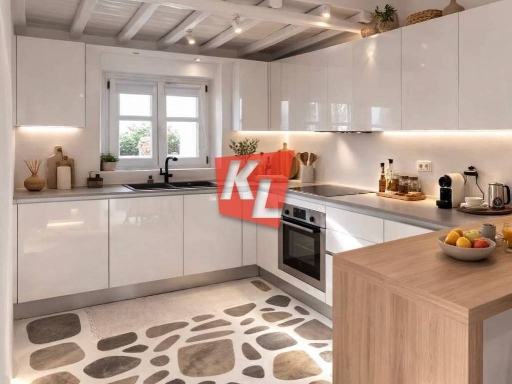 The serene ambience will make you forget how close you are to town. The architect found the perfect harmony producing an atmosphere which is the essence of simplicity, elegance and aesthetics. The total white of the house combined with the wooden pergolas showcase the traditional architecture, while offering all modern comforts and amenities. This is an ideal house to enjoy your stay on the island, to entertain with elegance, simplicity and originality or simply to relax by the pool.