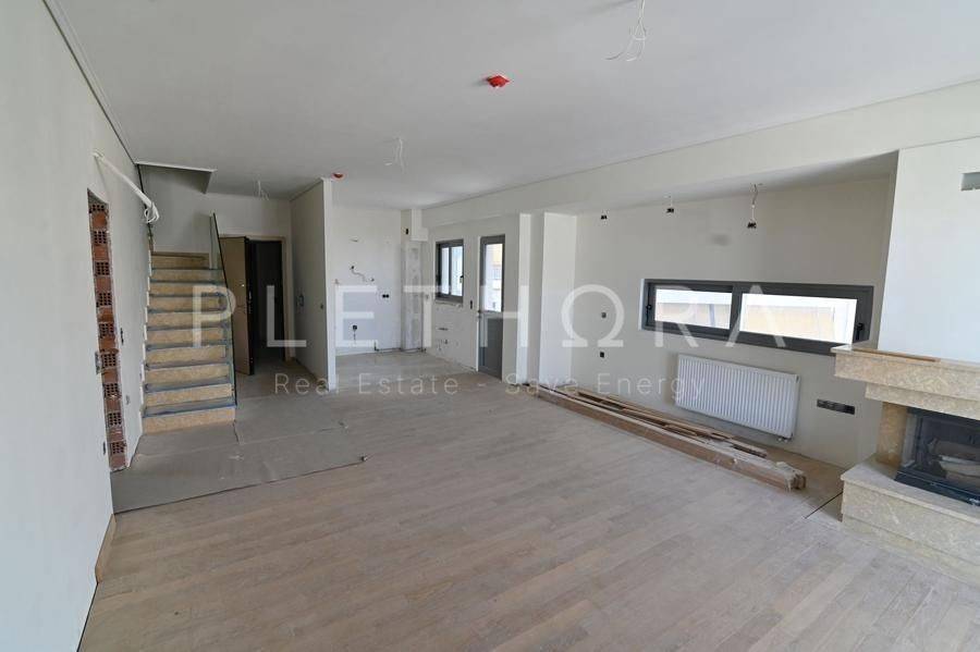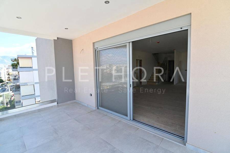 Paleo Faliro, Edem - Maisonette 136sqm plot 470sqm, unfurnished, bedrooms 2, levels 2, 5th - 6th, newly built, year built 2024, energy class B, 2 living rooms, 2 kitchens, 2 bathrooms, heating type: autonomous (natural gas), parking covered, quiet, dual aspect apartment, luminous, unobstructed view, frontage, painted, storage space 12sqm, external thermal insulation, fireplace, balconies, large balconies, tents, elevator, aluminum frames, double glazed windows, door screen, wood floors, secure door, alarm, video doorbell, luxurious, internal staircase, ev charger, internal elevator, pets allowed, within city plan, residential zone, south-eastern orientation, access from asphalt, close to tram station (up to 500m), close to sea (up to 200m), close to bus stop (up to 200m).