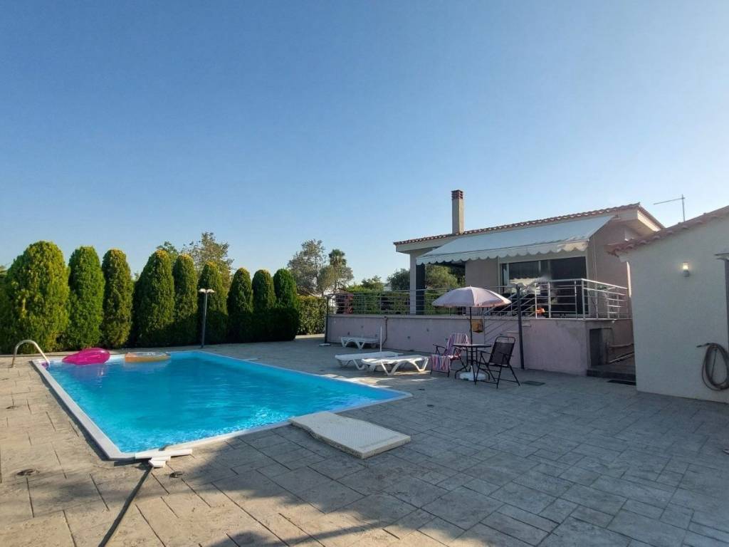 ΧΑΛΚΙΔΑ, ΠΕΡΙΟΧΗ ΑΓΙΟΣ ΜΗΝΑΣ, ΠΛΗΡΩΣ ΕΠΙΠΛΩΜΕΝΗ ΜΟΝΟΚΑΤΟΙΚΙΑ 100τμ, 3 Υ/Δ, 2 ΜΠΑΝΙΑ, ΕΝΙΑΙΟ ΣΑΛΟΝΙ-ΚΟΥΖΙΝΑ, ΤΖΑΚΙ, ΚΛΙΜΑΤΙΣΤΙΚΑ ΣΕ ΟΛΟΥΣ ΤΟΥΣ ΧΩΡΟΥΣ, ΣΕ ΟΙΚΟΠΕΔΟ 1.200τμ, ΔΙΑΘΕΤΕΙ ΞΕΝΩΝΑ 25τμ, ΠΙΣΙΝΑ, ΕΞΩΤΕΡΙΚΑ ΝΤΟΥΖ, ΑΠΟΘΗΚΗ, ΘΕΣΕΙΣ ΣΤΑΘΜΕΥΣΗΣ. ΒΡΙΣΚΕΤΑΙ ΛΙΓΑ ΧΙΛΙΟΜΕΤΡΑ ΕΞΩ ΑΠΟ ΤΗΝ ΠΟΛΗ, ΔΙΠΛΑ ΣΤΟ ΧΩΡΙΟ ''ΔΡΟΣΙΑ'' ΚΑΙ ΠΟΛΥ ΚΟΝΤΑ ΣΤΗ ΘΑΛΑΣΣΑ. AREA ''AGIOS MINAS'',DETACHED HOUSE FOR SALE 100sqm, 3 BEDROOMS, 2 BATHROOMS, FULLY FURNISHED, ON A PLOT OF 1.200sqm, WITH SWIMMING POOL, GUEST HOUSE, LOCATED NEXT TO THE SEA.