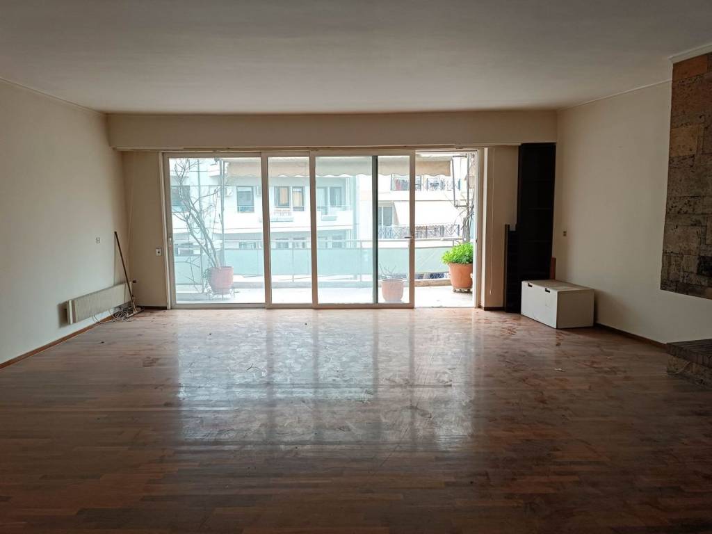 Fifth-floor apartment (fourth - floor based on the building permit), with a total surface of 144,10 sq.m. It consists of a kitchen, living room with a fireplace, three (3) bedrooms and two (2) bathrooms. The apartment has autonomous heating with gas. It is located close to the main square and the Grove of Nea Smyrni. (Energy efficiency class Z)