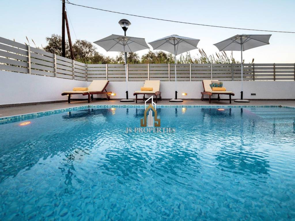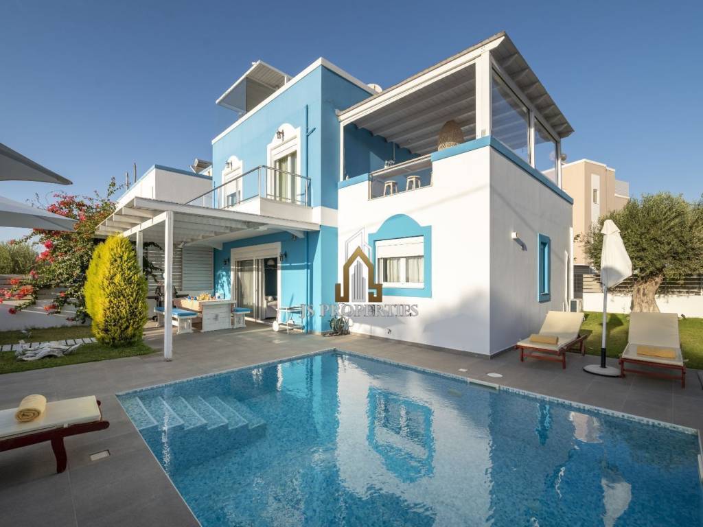 Kos, Mastichari Luxury Newly Built Furnished Villa of total area 130sqm on 2 levels on a plot of 350sqm with private garden, swimming pool, bbq, parking space and unlimited sea view Consisting of: • Ground floor containing an open plan living room, dining room, kitchen, 1 bedroom, bathroom and laundry room • First Floor containing 2 spacious bedrooms and bathroom • Terrace including roof garden with jacuzzi, shower and unlimited sea view Built in 2015, double glazing, aluminum frames, autonomous heating (heat pump), aluminum frames, side glazing, air conditioning, solar water heater, storage room, quiet area and 2 minutes walk from the sea. Price 630.000€ Property code:78 For any information please contact us