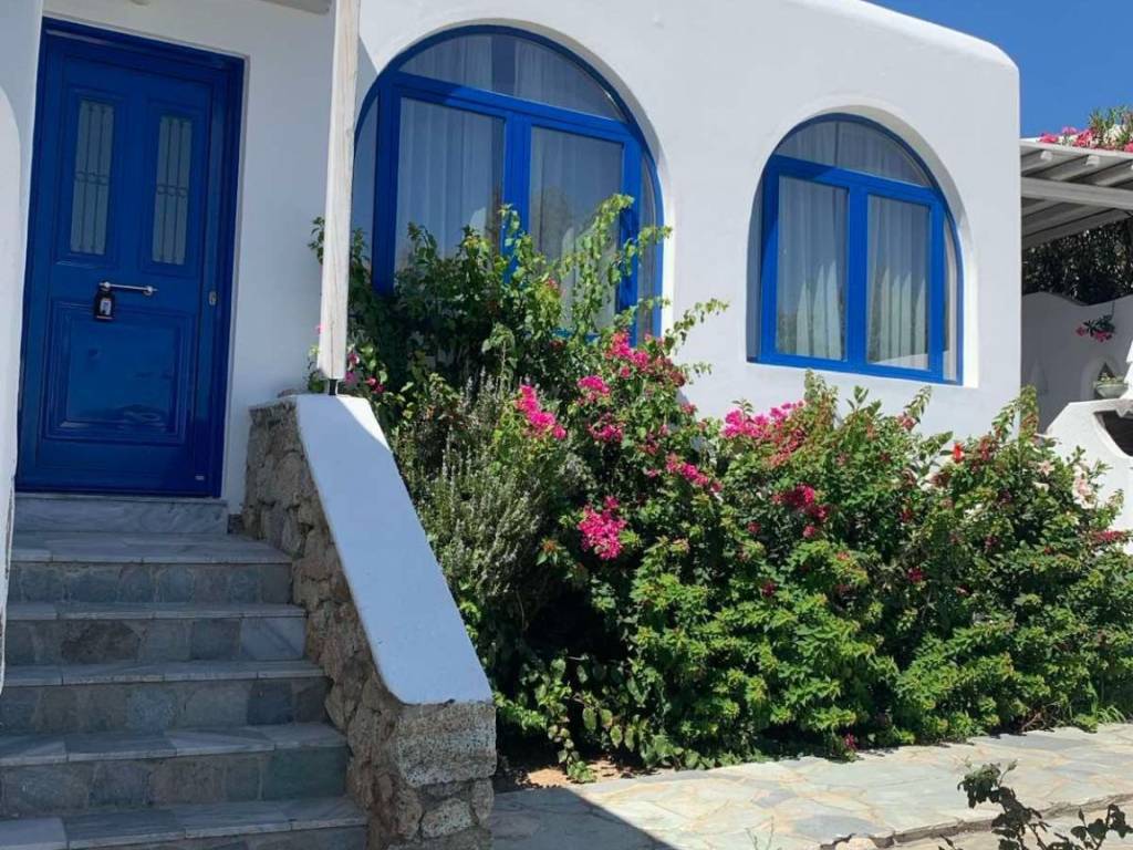 Perched in one of Mykonos’ most sought-after residential locations, this exceptional private villa offers an elevated lifestyle defined by privacy, elegance, and uninterrupted panoramic views over the crystalline waters of Ornos Bay. Ideally positioned just 1.1 km from Ornos Beach, 1.2 km from Glyfadi Beach, and 1.3 km from Agios Ioannis Beach, the property combines tranquility with immediate access to the island’s most iconic destinations. Set within beautifully landscaped surroundings, 700sqm plot, the residence spans 155 sq.m. and was originally built in 1990, undergoing a complete high-quality renovation in 2019. The villa seamlessly blends authentic Cycladic architecture with refined contemporary living, creating a timeless luxury retreat. Main Villa Designed to maximize natural light and sea views, the interiors feature elegant living and entertaining spaces with a warm yet sophisticated ambiance. Three spacious bedrooms, including an impressive Master Suite Two refined bathrooms Expansive living room with fireplace Formal dining area ideal for entertaining Fully equipped kitchen Additional lounge/sitting area New high-performance aluminum window frames Seamless indoor-outdoor flow leading to a private patio Private Guesthouse Within the same built area, an independent 25 sq.m. guesthouse offers discreet luxury accommodation, featuring a traditional built-in bed and a private bathroom — ideal for hosting guests or staff while maintaining absolute privacy. Outdoor Living The villa is surrounded by a beautifully curated garden, perfectly framing the unobstructed sea views and creating an atmosphere of serenity and exclusivity. Outdoor spaces are designed for relaxation, sunset gatherings, and effortless summer living under the Aegean sky. Location Highlights Panoramic views over Ornos Bay Absolute privacy in a prestigious residential setting Close proximity to Mykonos Town and the famous Windmills (4.1 km) Easy access to premier beaches and cosmopolitan lifestyle venues Only 5 km from Mykonos International Airport An exceptional opportunity to acquire a refined island residence, perfectly suited as a private luxury retreat or a high-yield investment in one of the Mediterranean’s most prestigious destinations.