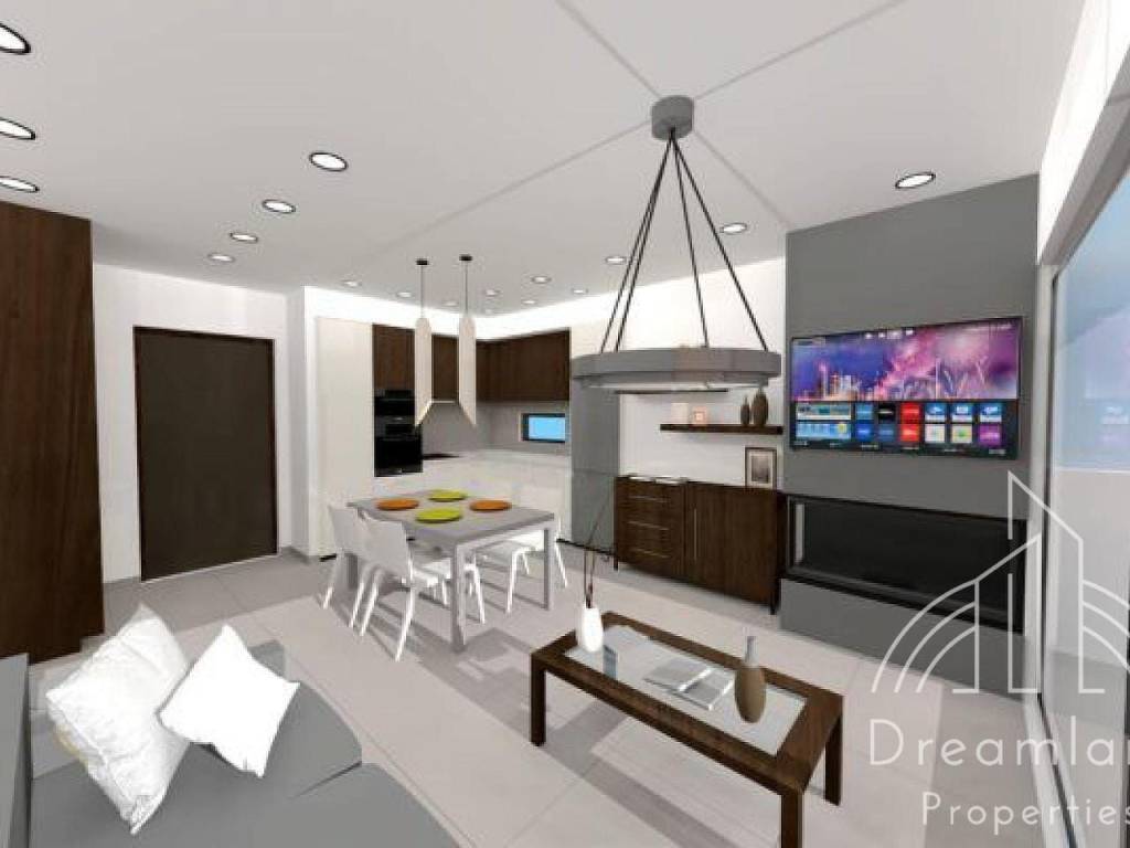 GLYFADA Terpsithea, Newly-Built Luxurious Apartment 77 sq.m., 1st Floor, 2 Bedrooms, 2 Bathrooms, Large Living Room - Dining Area, Spacious Kitchen, Autonomous Underfloor Heating with Heating Pump, A/Cs, Solar Warer Heater, Security Door, Large Verandas, Common Use Swimming Pool and BBQ, 1 Underground Parking Spot, Storage Unit, Luxurious Construction, Under Construction, Bright, Price 409.810 Euros (Listing code: 4542).