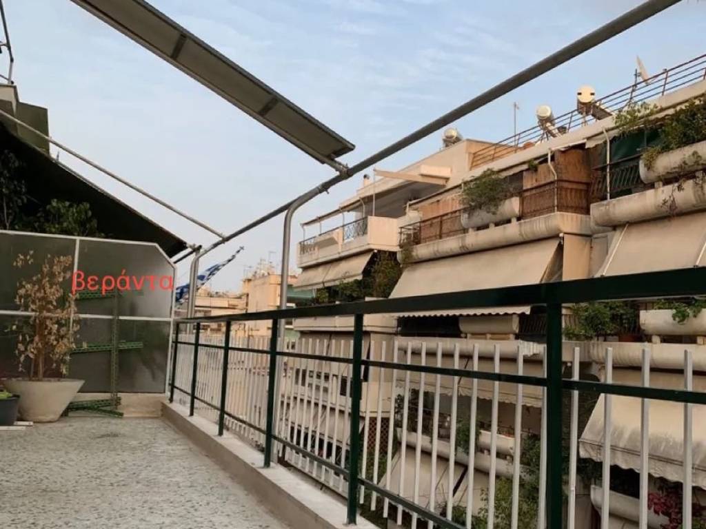 Sunny penthouse in a quiet neighborhood with immediate and easy access to all central locations. The apartment is spacious and dual-aspect, with ample storage space in every room, including loft storage areas and an internal storage room. It features three rooms, ideally arranged as two bedrooms and one office. It has double-glazed windows for insulation and wooden floors. The property has been freshly painted, and the floors have just been maintained, polished, and refreshed. It also features a brand-new security door. The bedrooms are equipped with air conditioning. The balcony is exceptionally large (30sqm), with open sky views. The apartment is truly filled with natural light (the photos and video were taken without electricity or artificial lighting). The property is offered with no agent’s fee. Location: Close to Syngrou Avenue, providing direct access to public transport and main exits toward Piraeus and Faliro. 800 m from the Stavros Niarchos Foundation Cultural Center. Two supermarkets just one street away. 10–15 minutes on foot to the central markets of Kallithea and Nea Smyrni. Harokopio University and Panteion University nearby. Ten minutes by car from Philopappou Hill and the Acropolis.