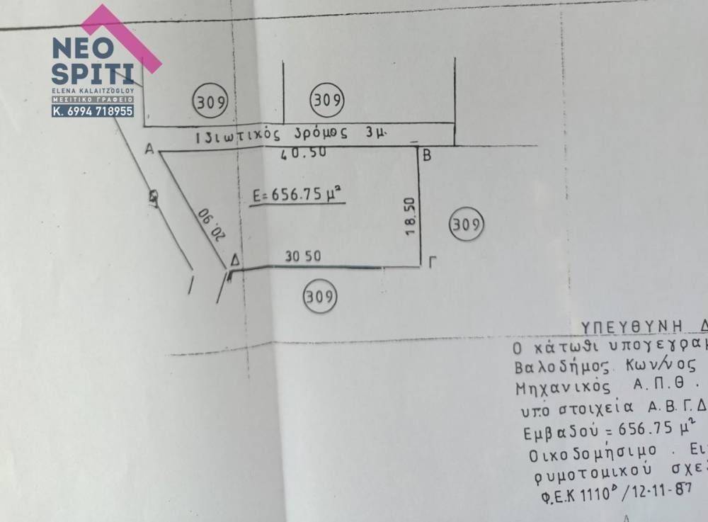 ID: #1738 - Thessaloniki, Chortiatis: FOR SALE plane plot 600sqm facade, corner with a Coefficient Building of 0.4, Buildable area 240sqm and can build up to 240sqm. It is located in a residential area with a mountain view. . The asking price is 87.000€.