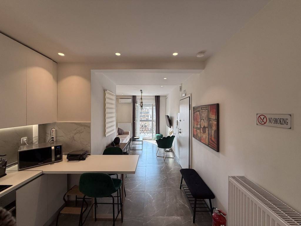 Excellent, premium apartment for rent with high specifications, fully furnished and fully equipped, ready for immediate occupancy. Located on a high floor, offering a unique sense of openness, abundant natural light, and beautiful views. It features a large front balcony, ideal for relaxation, while the overall aesthetic of the property exudes premium character and elegance. The construction quality is exceptional and the building is meticulously maintained. In a prime location in the city center, next to public transport, a main road, a market, and a supermarket, it offers comfort, functionality, and convenience for everyday life. Ideal for professionals or a couple looking for a quality residence with modern amenities and immediate access to everything. Location: The Antigonidon area is located just a few kilometers from the historic center of Thessaloniki. Unique Features: The area has a lot going for it since it's close to the city center, especially Thessaloniki's beach, which is the jewel of the seaside. The city center extends around the perimeter of the area, where there is a wide range of restaurants, cafes, and bars that bring life to the city and attract people of all ages. Antigonidon Square is the hallmark of the area, attracting crowds throughout the day. Accessibility: The area is extremely well connected to other areas via the OASTH bus lines.