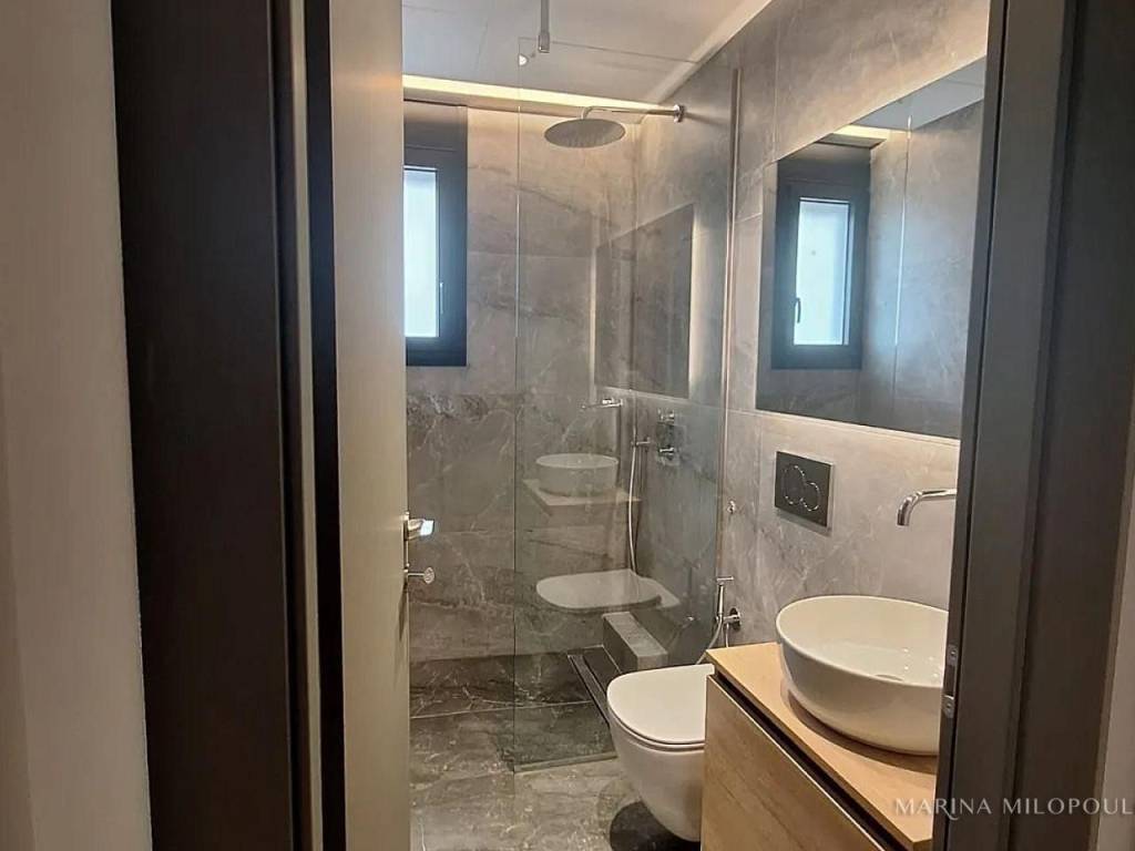 GLYFADA - Ground floor newly built, luxury floor apartment, 120 sq m, on the 1st floor It consists of a reception - dining area, open pla kitchen with all electrical appliances, 3 bedrooms (1 master), 1 additional bathroom and 1 wc, large terraces. It is part of a modern building, class A+ and features fan coil, underfloor, triple glazing and energy frames, solar water heater, heat and sound insulation, night current, alarm and security cameras, satellite TV, 1 underground storage and parking space with electric car charging. It is located in a quiet residential area, close to the golf course, local market, restaurants, kindergarten. Maintenance expenses 100€ aprox. Small pet is welcomed. Distance 1.5 km from the shopping area of Glyfada, 2 km from the public beach of Glyfada, 2.5 km from the 5* beach of the "One and Only Resort" and 5.5 km from the Hellinikon Metropolitan Park. Also available furnished on request.