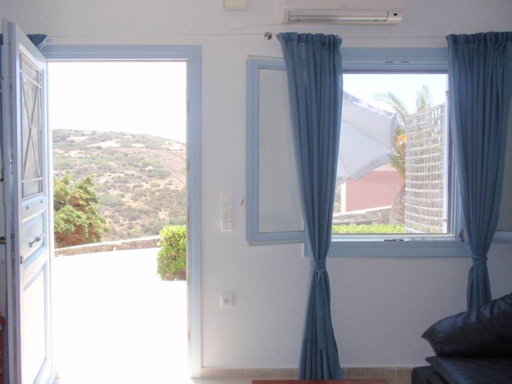 VACATION Rental (for 60 days or more, any time bet. April and October), Studio Nice View, Peacefulness, 35sq.m.. SYROS isl.. Ground floor of a detached house. Air-condition, yard, garden, parking lot, Wi-Fi, washing machine. Only 3 km from some of the most beautiful beaches of the island: Kini, Delfini, Lotos. Bus stop at 300m. / 2,5km from Ermoupolis (the capital). 1,800€/month. Cell nos.: +**/******, +**/******,