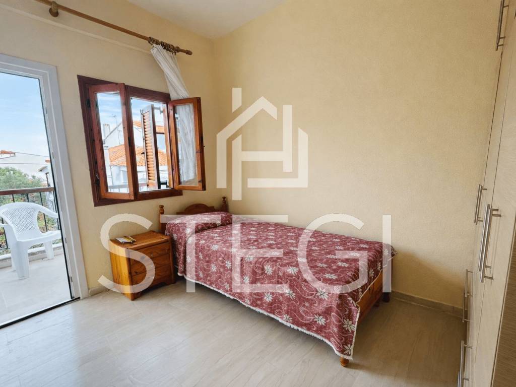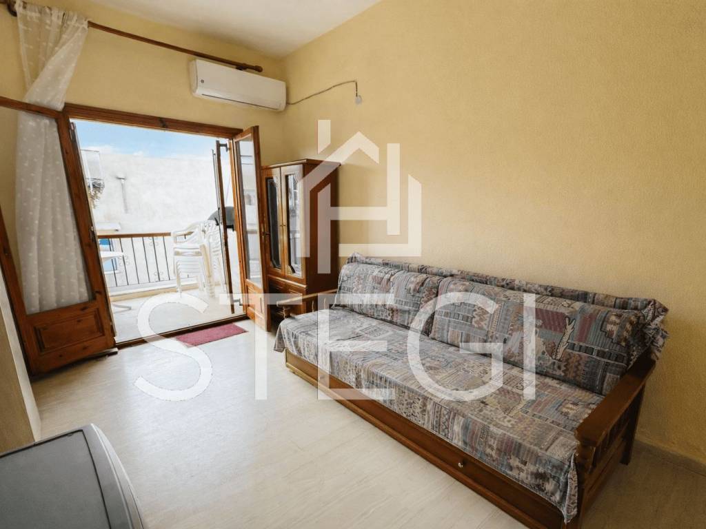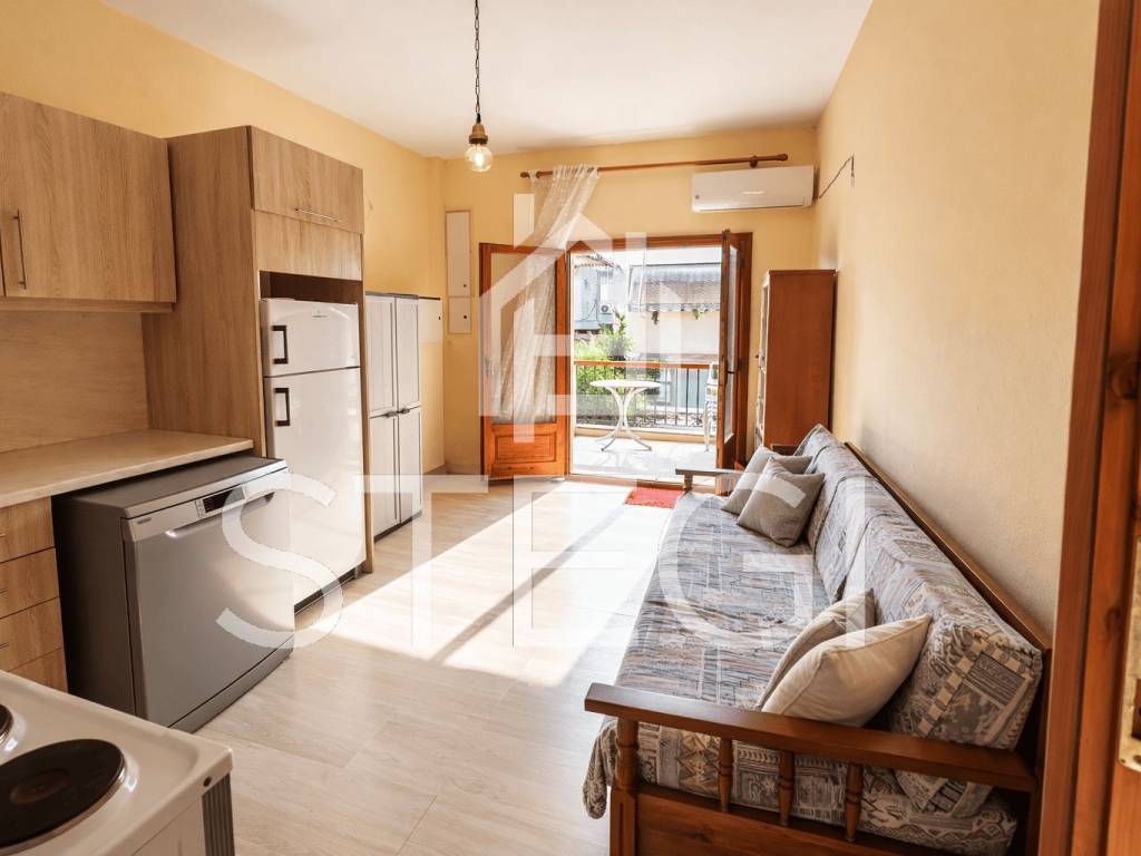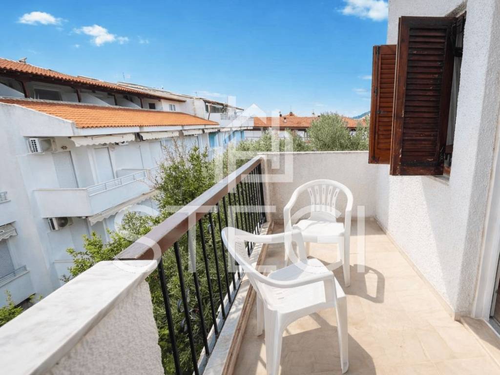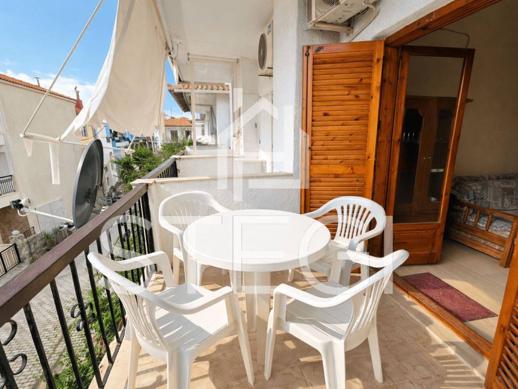 RESIDENCE Location - Pefkochori ( 200m from the sea ) Available for sale furnished second floor apartment with all the comforts as it consists of 1 bedroom, living room-kitchen and 1 bathroom and big veranda. Just 200 meters from the sea, well-maintained apartment in a quiet area next to the blue waters of Kassandra. It is also very close to the shops and the super market of the village. Ideal for unforgettable and relaxing holidays. Construction year – 1987 Square meters - 33m2 Features Kitchen - living room. 1 Bedroom 1 BathroomLarge balcony COMFORTS o Cooling-heating air conditioning o Equipment kitchen o Bath tiles o Double windows SURROUNDINGS o Outdoor lighting o Perimeter fencing o Great verandas o Green spaces