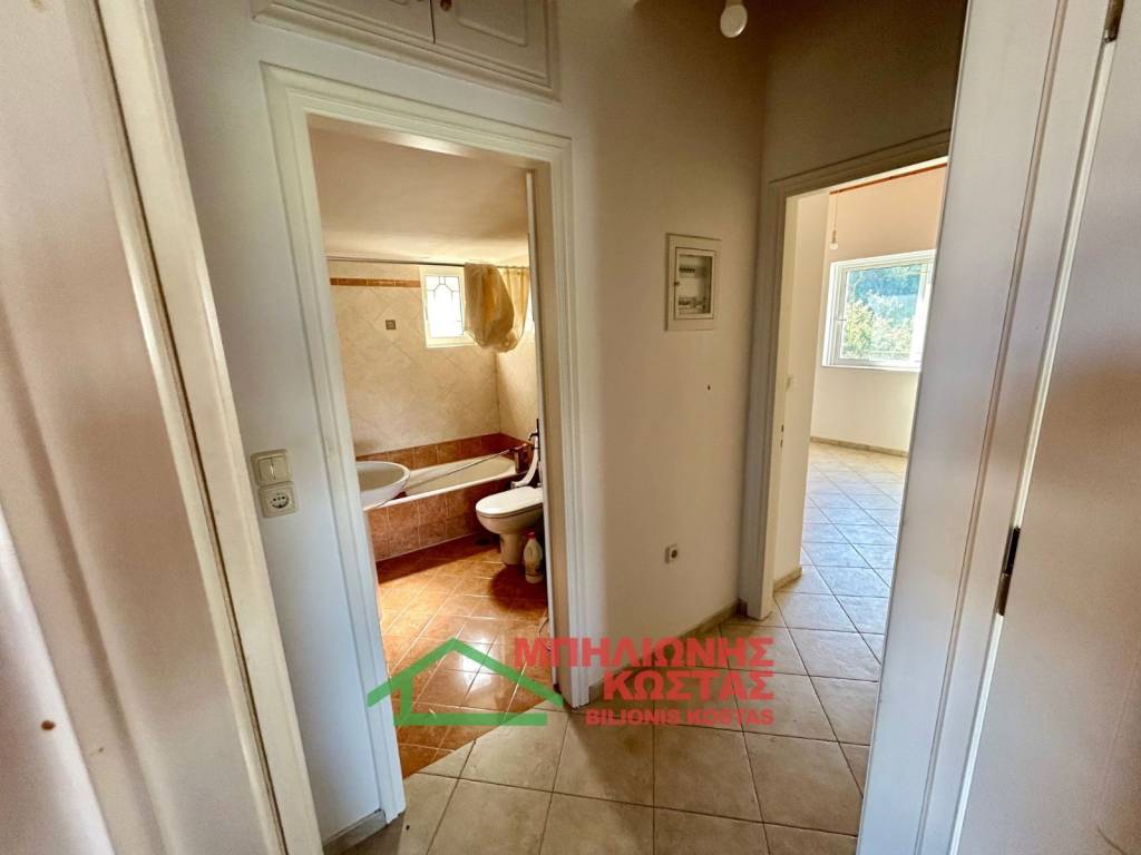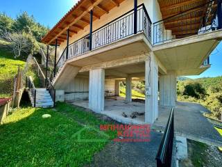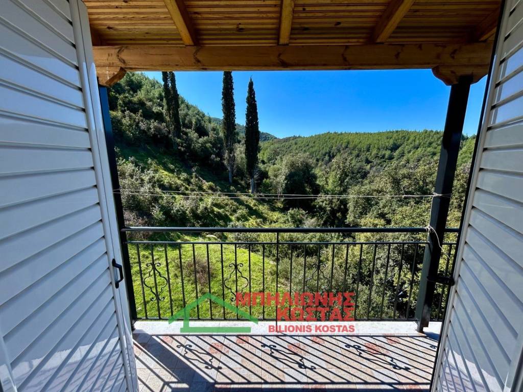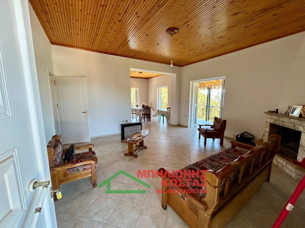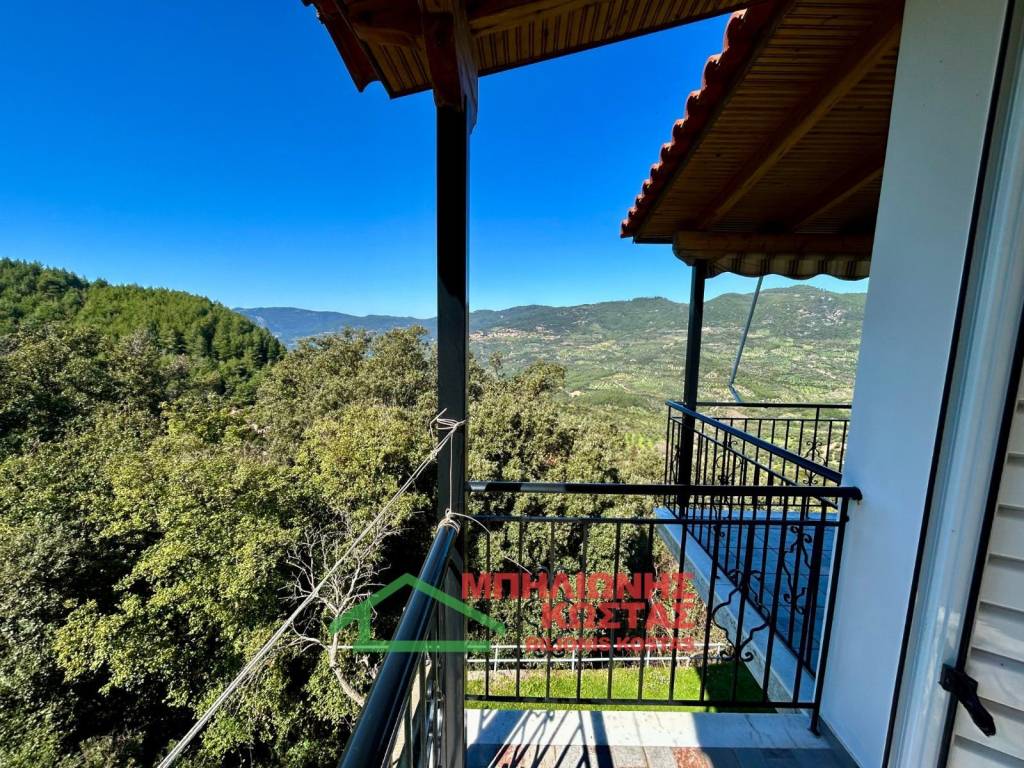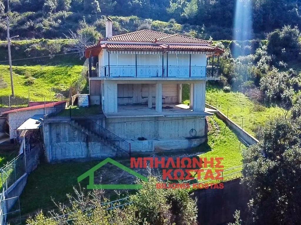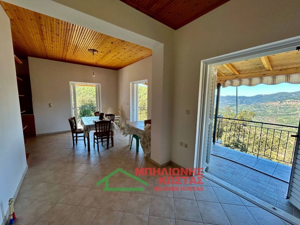 Detached House 199 sq.m. with Panoramic Views in Milea, Ilia For sale a two storey detached house of total surface 199 sq.m. on a 283 sq.m. plot in the mountainous village of Milea, Ilia. The building permit was issued in 2002 and the property features a tiled roof, offering durability and architectural harmony with the natural surroundings. The main residence is developed on the upper floor of 99 sq.m., accessed via an external staircase. Upon entering, there is a spacious and bright living room with fireplace, forming the central living area of the home. At the rear, the kitchen with dining area is arranged in an open layout, creating a functional and comfortable everyday living space. The entire living area communicates with a wide balcony equipped with awnings, offering unobstructed panoramic views of the lush green landscape, hills and open horizon. The elevated position of the property ensures privacy, openness and uninterrupted natural scenery, which is one of its strongest commercial advantages. To the left of the entrance, a hallway leads to two comfortable bedrooms and two bathrooms with WC. All rooms benefit from windows and natural daylight, ensuring excellent ventilation and brightness throughout the day. The house has infrastructure and the ability to connect an oil boiler. The ground floor, also 99 sq.m., is currently unfinished at concrete stage. This provides significant development potential, allowing the creation of a second independent residence, guest accommodation, rental unit or auxiliary spaces. Its completion can substantially increase the overall market value of the property. The plot has access via a concrete road directly connected to the main asphalt road of the village, ensuring easy year round accessibility. The outdoor area offers the possibility to landscape a garden, create outdoor seating areas or private parking. This property is suitable for permanent residence in a peaceful natural environment, as a holiday home with panoramic views, or as an investment opportunity with the prospect of developing two independent living units. Distances: 10 km from the sea 11 km from Lake Kaiafas 8 km from Zacharo, Ilia 13 km from Krestena, Ilia 17 km from Ancient Olympia, Ilia 31 km from Pyrgos, Ilia 30 km from Kyparissia, Messinia 69.5 km from Kyllini port 63 km from Kalamata, Messinia