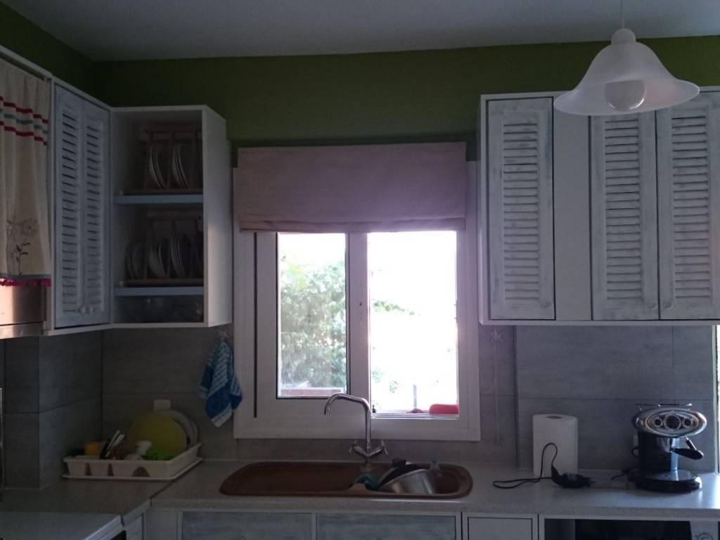 In Karavomylos, Sami, a detached house of 37 sq m is for sale. (permitted building 177.44 sq m) built in 2013 on a plot of 250 sq m. 300m from the sea, amphitheatrical with a garden and fruit trees, furnished with all electrical appliances, ready for occupancy. It consists of a kitchen, two rooms and a bathroom. Also 25 sq m. loft and 6 sq m. storage room, covered barbecue 40 sq m, unlimited mountain and sea views. Serious offers only. REAL ESTATES ARE EXCLUDED.