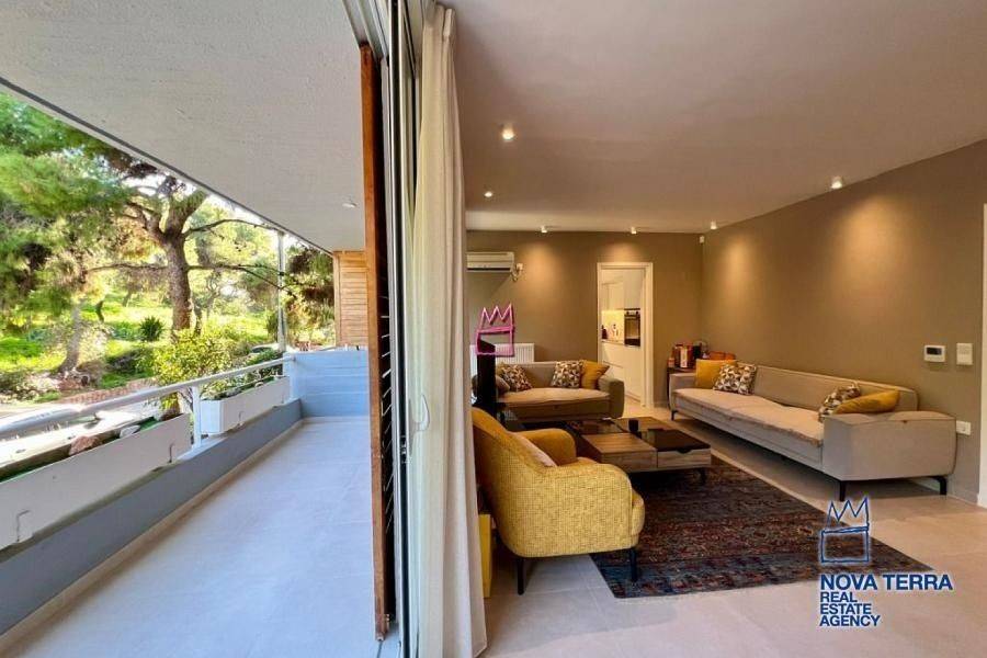 An exceptional 70 sq.m. apartment, fully renovated in 2025, is offered for sale in the highly desirable and prestigious area of Kavouri, Vouliagmeni, one of the most renowned seaside destinations of the Athenian Riviera. The property is located just 200 meters from the sea, providing immediate access to beaches, coastal walks, and the cosmopolitan lifestyle of the area. The apartment is situated on the 1st floor of a well-maintained residential building with an elevator. It is front-facing and through-floor, ensuring abundant natural light, excellent ventilation, and a strong sense of openness. It enjoys a peaceful view of the mountain and surrounding greenery, offering a calm and pleasant living environment. Layout: Two comfortable bedrooms, ideal for both permanent residence and holiday use Bright living room with direct access to the balcony,Modern and functional kitchen Bathroom with shower, designed in a contemporary style Balcony, suitable for relaxation and outdoor enjoyment The apartment features a minimal, modern aesthetic, with carefully selected details and tiled flooring throughout, ensuring durability and ease of maintenance. Technical Specifications & Comfort Features: Complete renovation in 2025 Heat pump heating system, offering high energy efficiency Air conditioning for year-round comfort Double-glazed windows for thermal and sound insulation High-quality aluminum window frames Security door,Alarm system,Insect screens and awnings,Freshly painted interiors Accessibility for people with disabilities (AMEA) Additional Advantages: Energy Class: C Suitable for primary residence, holiday home, or investment use Excellent location close to the beach, shops, restaurants, and public transportAn ideal combination of tranquility, natural surroundings, and close proximity to the sea Property Code: 52949 www.nova-terra.gr