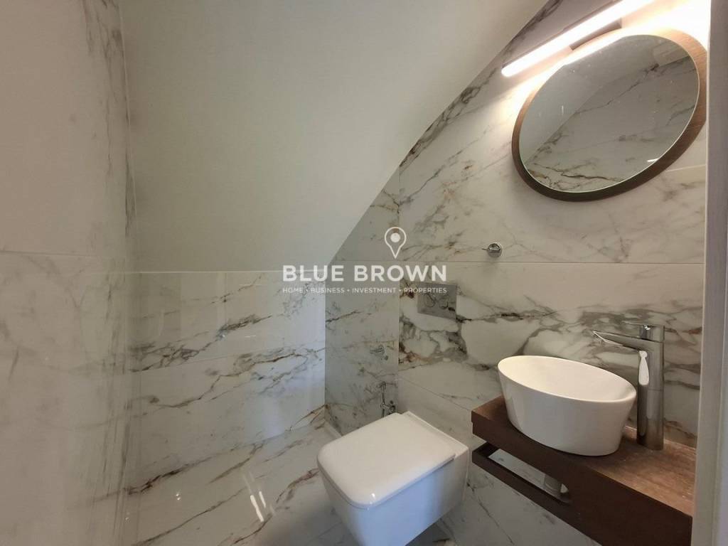 In the heart of Argyroupoli, a luxurious maisonette on the 5th and 6th floors is available for rent, with a total surface area of 150 sq.m., developed on two levels. This is a penthouse property, exceptionally bright, offering unobstructed sea views, and combining modern architecture with high construction standards. The residence consists of three bedrooms, two of which are master bedrooms, four bathrooms, two kitchens, and a spacious living room, as well as a dedicated office space. The interior layout is connected via an internal staircase, providing comfort and functionality. The property was constructed in 2025 and is newly built, in excellent condition. It features autonomous heating with a heat pump, heating per level, air conditioning, a boiler, thermal insulation (external), aluminum window frames with double glazing, and wooden floors. Additionally, it includes electrical appliances, an energy-efficient fireplace, a storage room, a swimming pool, a security door, a video intercom system, an alarm system, and large verandas. The building is equipped with an elevator, and the property is accompanied by two underground parking spaces. This is an exceptional, high-specification residence, ideal for those seeking luxury, comfort, and quality of life in a prime location. The property holds an energy efficiency certificate of Class A+.