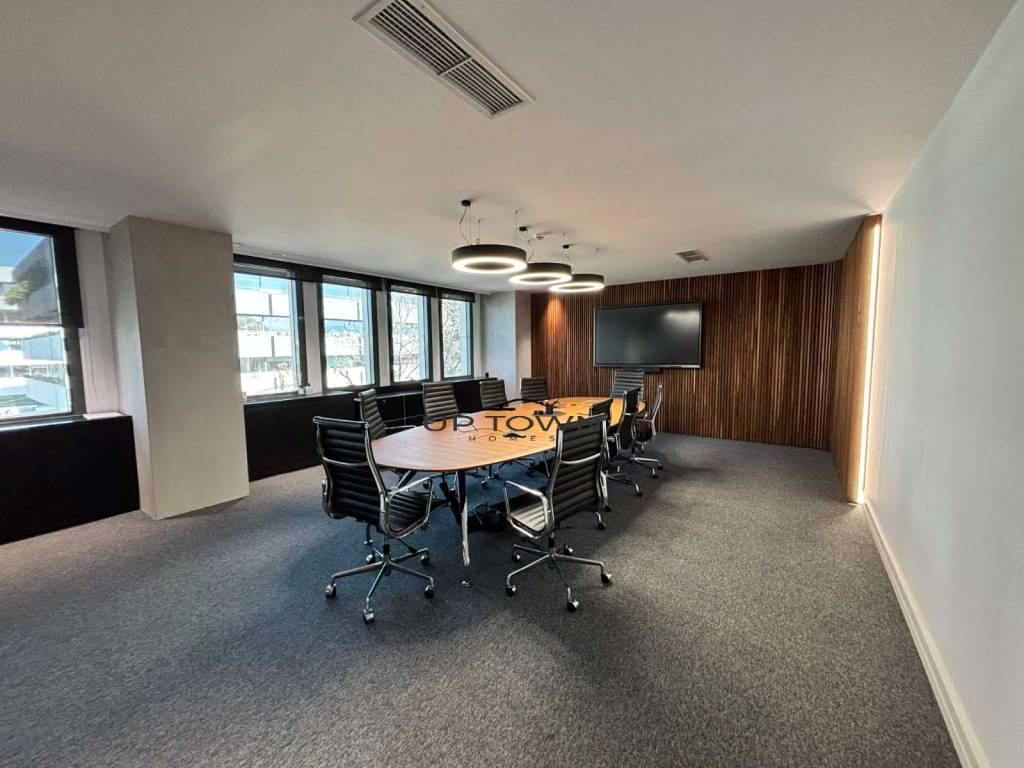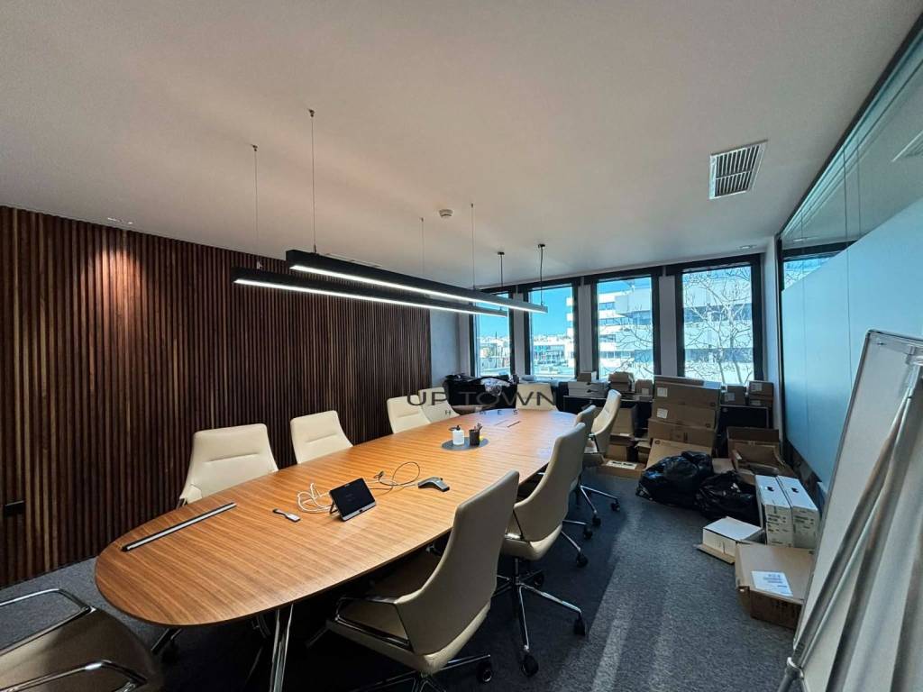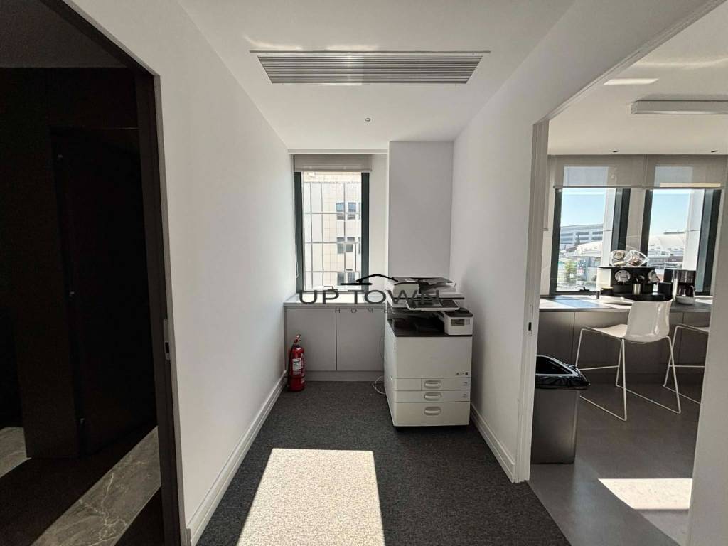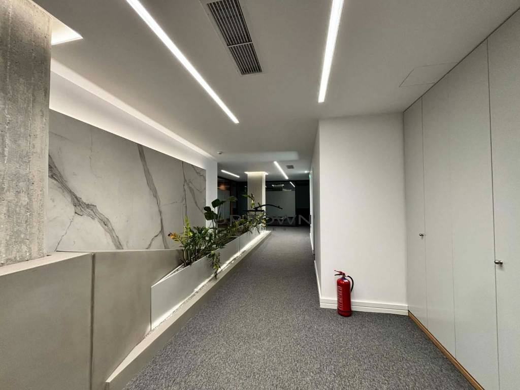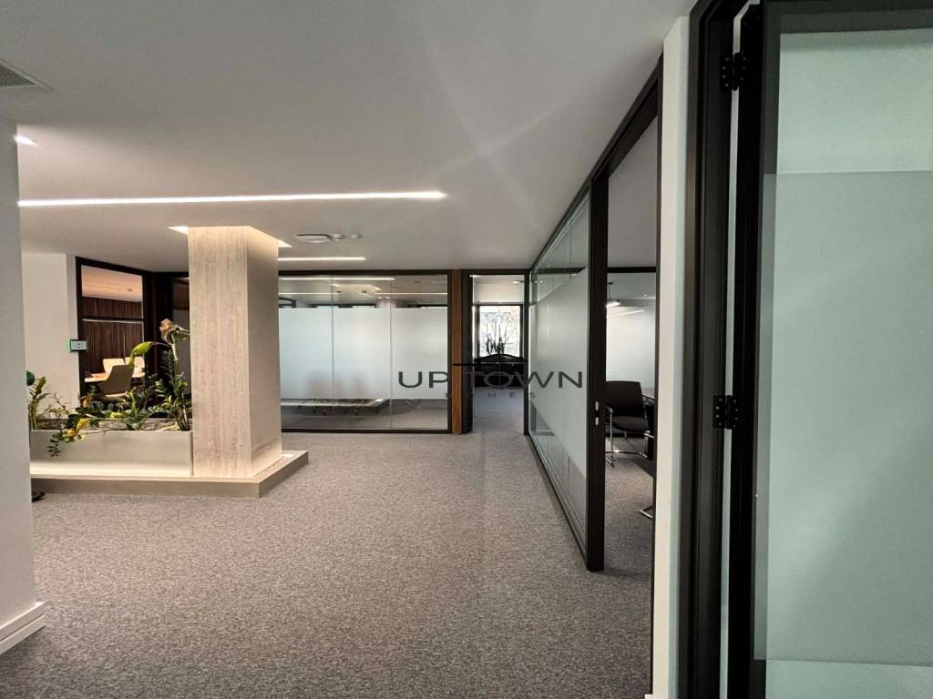 In a highly privileged and prominent location in Marousi, an office space of 560 sq.m. is available for lease. The property is situated on the 2nd floor of a modern professional building and is ideally suited for companies seeking high-standard premises in a strategic business location. The office is corner, front-facing and dual-aspect, offering abundant natural light and open views, creating a pleasant and productive working environment. Originally constructed in 2005, the property was fully renovated in 2022 using high-quality materials and refined architectural design, meeting the requirements of modern corporate organizations. The layout includes an impressive reception area, seven independent offices, three fully configured meeting rooms, a functional kitchen area, as well as two spacious restroom facilities, each featuring three WC units, ensuring comfort and convenience for both staff and visitors. The premises are equipped with comprehensive security and technological infrastructure, including a CCTV monitoring system, central alarm system, as well as an independent alarm system with individual access codes for each office, fire detection system, and security entrance door. In addition, concealed lighting and full air-conditioning contribute to a refined and efficient professional environment.The building is served by an elevator and the property benefits from ten underground parking spaces, a particularly valuable feature for corporate use in such a central business area. This fully upgraded office space represents an excellent opportunity for corporate headquarters, multinational companies, or organizations seeking a prestigious and well-organized professional environment in Marousi.