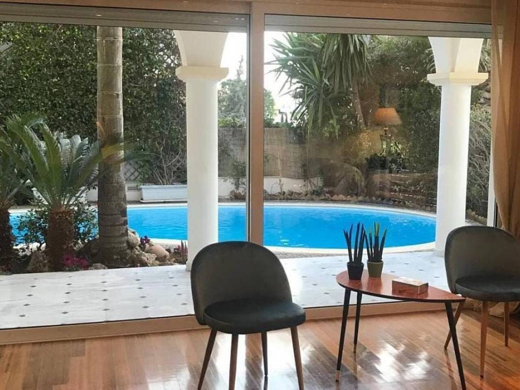 ALIMOS Pani Area, Detached House 360 sq.m., 3 Levels, Ground Floor - 1st - 2nd Floor, 5 Bedrooms (3 Master), '03 Construction, 3 Bathrooms, Wc, Villa, In a 400 sq.m. Plot,, 2 Living Rooms , Autonomous Heating, Air Conditioning, Fireplace, Security Door, Solar, Underground Parking, Storage Room, Garden, Swimming Pool, Excellent Condition, Bbq, Jacuzzi, 3 Parking Spaces, Storage Room, Oak Floors, Built-in Wardrobes, Boiler, Security Alarm, Double Glazing Windows, Quiet Area, Top Location, Close to Transportation, Price 2.000.000 Euros, Negotiable (Listing code: 58).