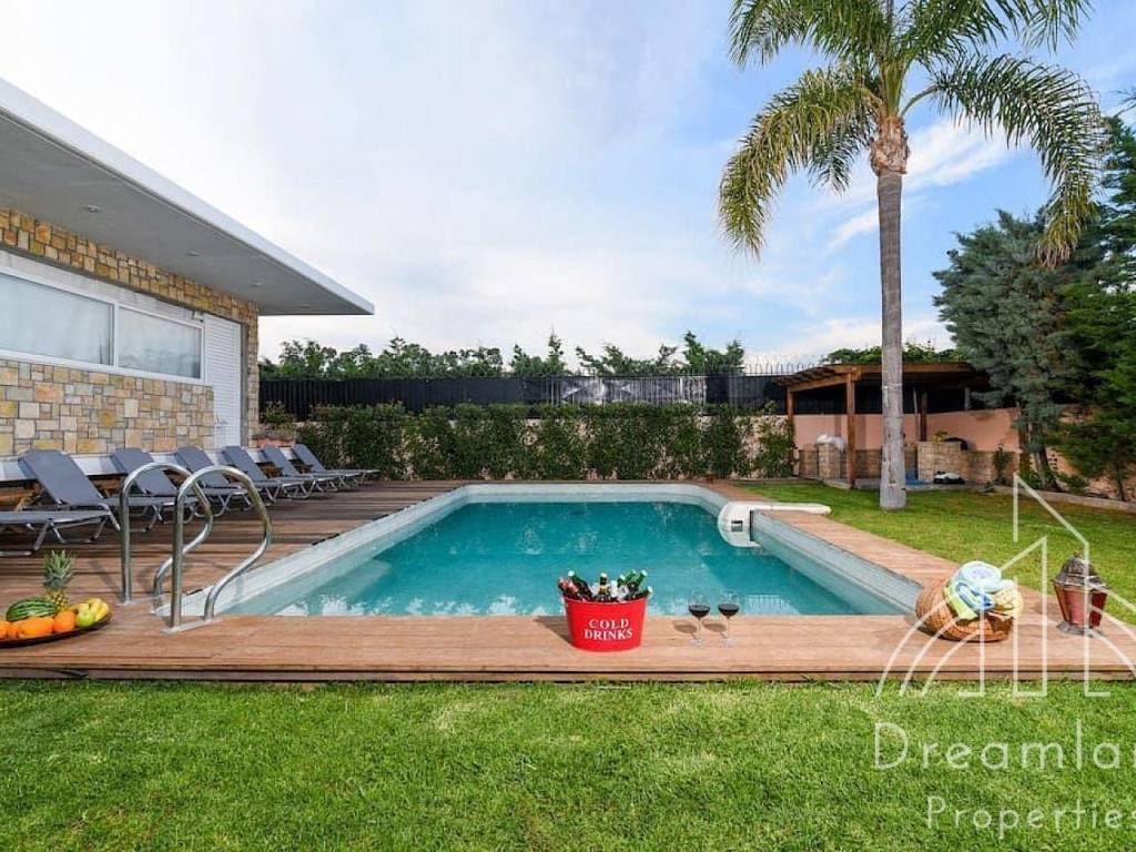 VARI Area, Detached House 400 sqm., Ground Floor - 2nd Floor, 5 Bedrooms, '04 Construction Year, Villa, Furnished, on a Plot of 2,000 sq.m., Autonomous Heating, Air Conditioning, Fireplace, Security Door, Indoor Parking, Storage Room, Garden, Swimming Pool, Excellent Condition, Luxurious, Pets Allowed, 3 Jacuzzi, Steam Room, Auxiliary Kitchen, Bbq, 3 Kitchens, 3 Living Rooms, 3 Fireplaces, Luxurious Construction with an Independent Studio with Fireplace Bbq and Kitchen, Security Alarm with Thermal Cameras, Dog Houses, A/c in all Rooms, Fully Furnished and Equipped, We Have a Wide Variety of Fully Furnished Apartments, Ask us for Availability, Price 6.500 Euro, (Listing code: 189).