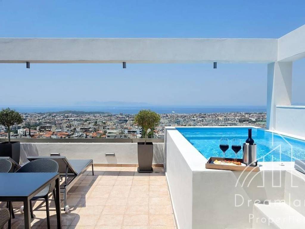 GLYFADA Aixoni Area, Newly Built Penthouse Maisonette 190 sqm., 3rd - 4th Floor, 2019 Construction Year, Furnished, 3 Bedrooms, Open Kitchen with Living Room, 3 Bathrooms, W.C., Autonomous Heating with Petroleum, Aluminum Frames, Wooden Floors, Fitted Wardrobes, Parking Space, Fireplace, Private Pool with UNLIMITED SEA VIEW, A/C, Mosquito Screens, Satellite Antenna, Interanl Stairs, Garden, We Offer a Wide Variety of the Best Furnished Apartments, Ask For Availability,, Price 7,000 Euros, (Listing code:2480).