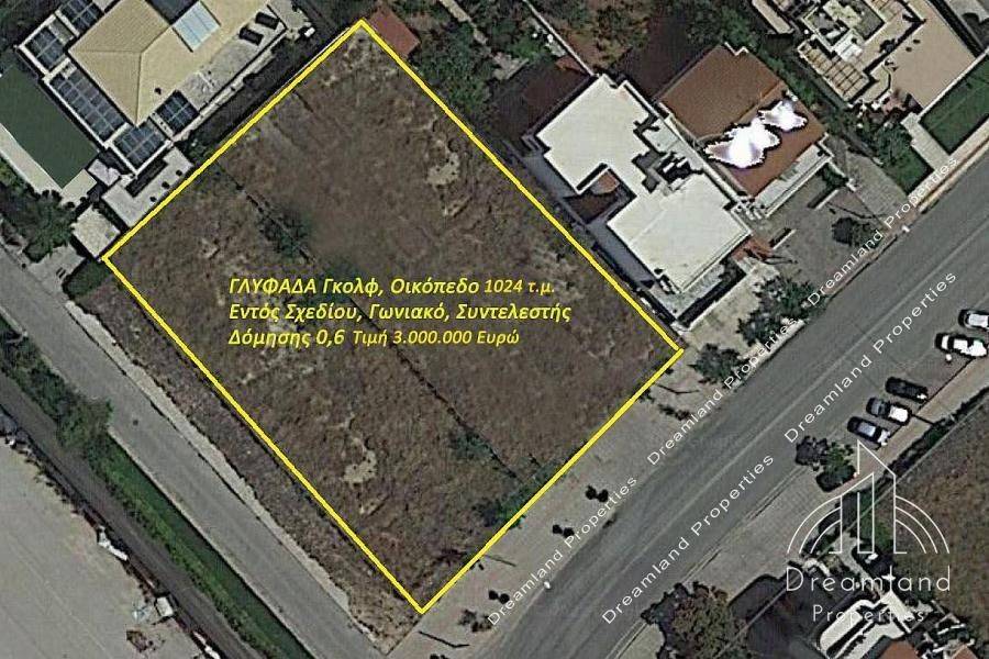 GLYFADA Golf, Land Plot 1.204 sq.m., Within Urban Plan, Corner Plot, Building Coefficient 0.6, Price 3.000.000 Euros (Listing code: 2602).