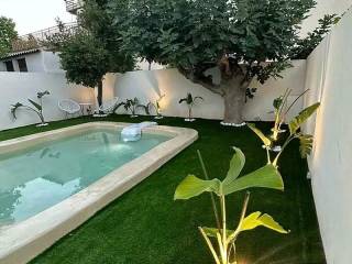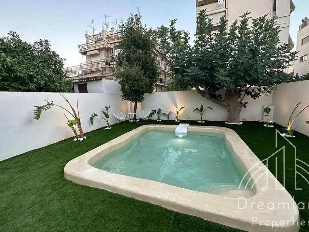 GLYFADA Center, Detached House 120 sq.m., Frontage, Ground Floor, 2 Bedrooms, Furnished, Open Plan Living Room - Kitchen, Private Swimming Pool, Bathroom, W.C., Security Door, A/Cs, Solar Water Heater, Alarm, Aluminum Window Frames, Double Glazed Panes, BBQ, Private Garden, Parking Spot, Bright, Close to the Market of Glyfada, Fully Furnished and Equipped, We Offer a Wide Variety of the Best Furnished Apartments, Ask For Availability, Price 4.800 Euros (Listing code: 3022).