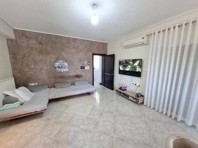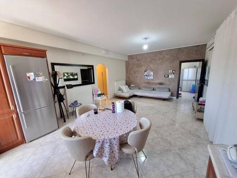 Acharnes (Menidi) - Apartment 107sqm bedrooms 3, levels 2, 1st (82sqm, 2 bedrooms, living room, dinning room, kitchen, bathroom) - rooftop room (25sqm), excellent condition, year built 2002, energy class C, living room, hall, 2 kitchens, 2 bathrooms, heating type: autonomous (oil), parking covered, quiet, dual aspect apartment, corner, unobstructed view view, frontage, painted, balconies, large balconies, built in appliances, aluminum frames, double glazed windows, door screen, ceramic tiles floors, office, secure door, residential zone, close to school (up to 500m), close to bus stop (up to 200m), close to super market (up to 500m), close to market (up to 500m).