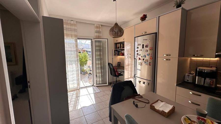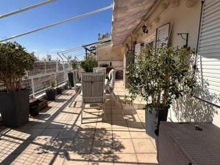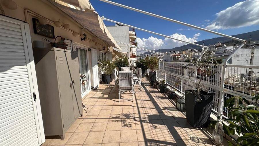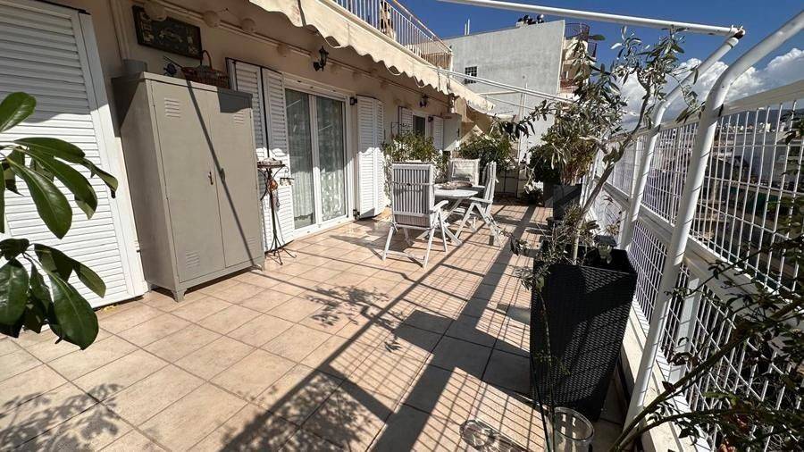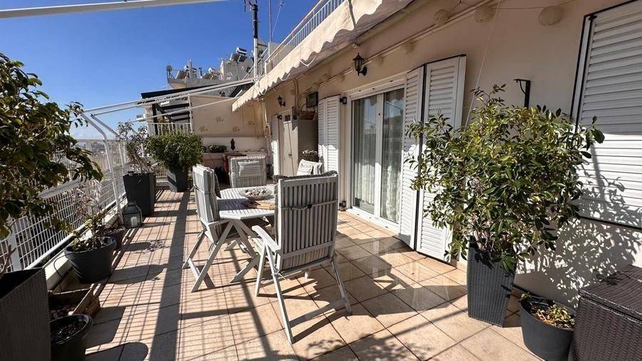 Vyronas - Apartment 121sqm bedrooms 3, levels 1, 5th (121sqm, 3 bedrooms, living room, dinning room, kitchen, bathroom, wc), penthouse, excellent condition, year built 1976, renovation year 2020, energy class D, living room, kitchen, 2 bathrooms, heating type: autonomous (natural gas), air condition, quiet, dual aspect apartment, luminous, unobstructed view, painted, fireplace, large balconies, tents, elevator, double glazed windows, door screen, wood & tile floors, separate kitchen, secure door, pets allowed, within city plan, residential zone, special offer, close to bus stop (up to 200m), close to school (up to 500m), close to market (up to 500m).