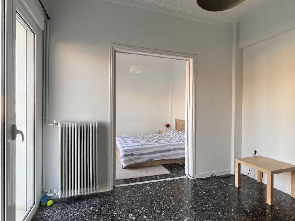 AIGALEO – renovated top-floor apartment for Sale, 85 sq.m., 2nd Floor. The apartment was built in 1979 and is located in a three-story building with only two other floor-through apartments, in a particularly quiet area of Aigaleo. It consists of a living–dining area, kitchen, two bedrooms, and one bathroom. The property is very bright and dual-aspect, featuring a balcony and a large veranda. It offers autonomous natural gas heating, mosaic and tile flooring, and aluminum window frames. It is ideally located just 600 meters from the University of West Attica and a 10-minute walk from “Agia Marina” metro station. The apartment is currently rented until August 2026. NO ELEVATOR