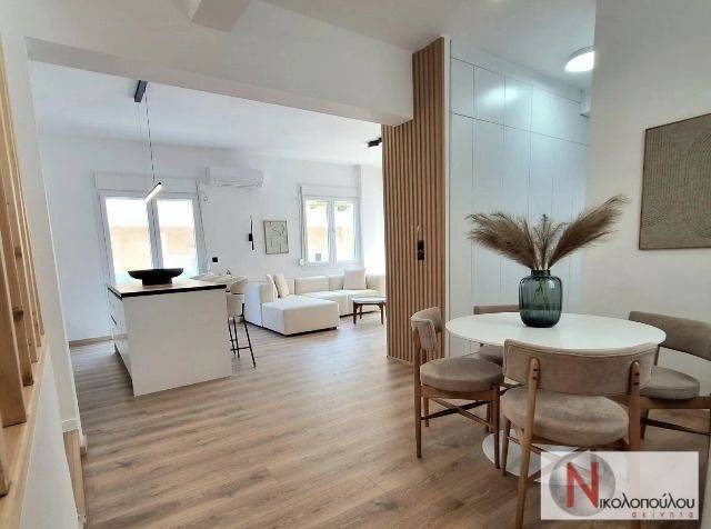 Πλήρως ανακατασκευασμένο διαμέρισμα 2 επιπέδων, 115 τμ, 5 λεπτά πεζή από τη στάση Μετρό Εθνική Άμυνα και 10 λεπτά πεζή από τοπική αγορά του Νέου Ψυχικού και πλατείες. 1ος όροφος: Χώρος υποδοχής με τραπεζαρία και open plan κουζίνα, 2 υπνοδωμάτια, μπάνιο. 2ος όροφος: Υπνοδωμάτιο με μπάνιο και ιδιωτική ταράτσα 70 τμ. Αυτόνομη θέρμανση με αντλία θερμότητας, ηλιακός, προεγκατάσταση συναγερμού, ενεργειακά κουφώματα με διπλά τζάμια.