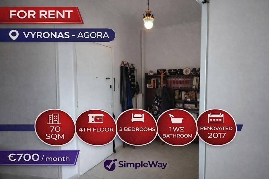 Vyronas - Apartment 70sqm bedrooms 2, levels 1, 4th, year built 1979, renovation year 2017, energy class B+, living room, kitchen, bathroom, quiet, secure door, residential zone.