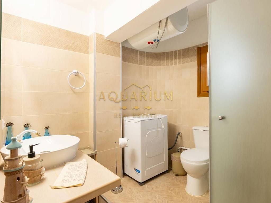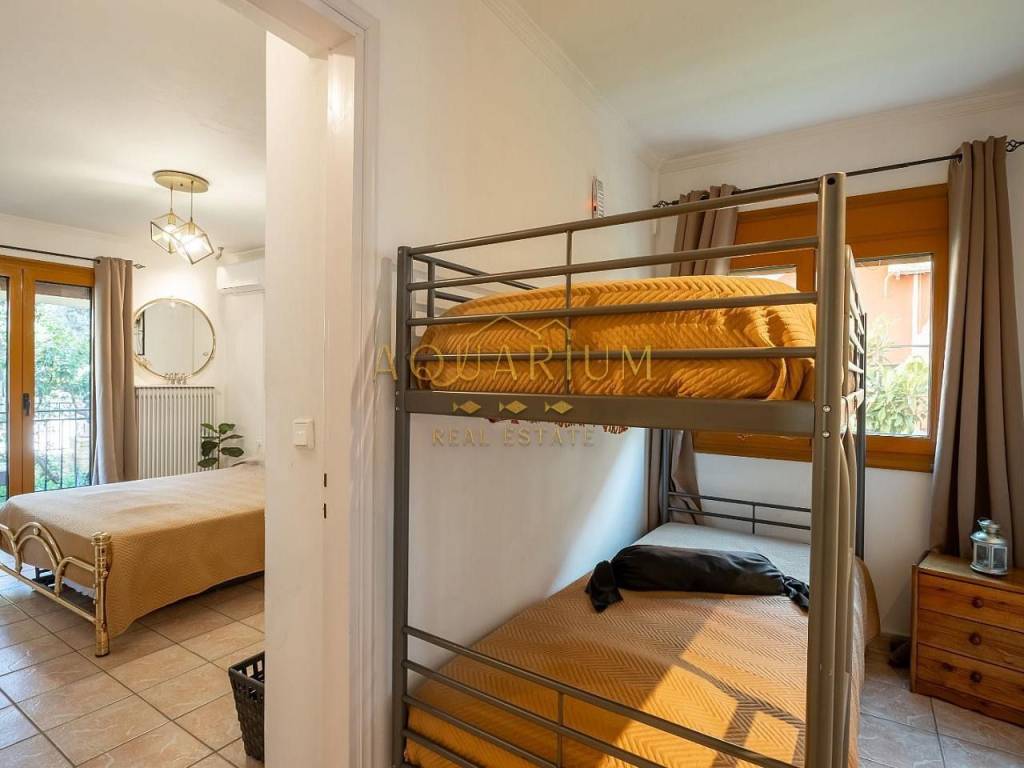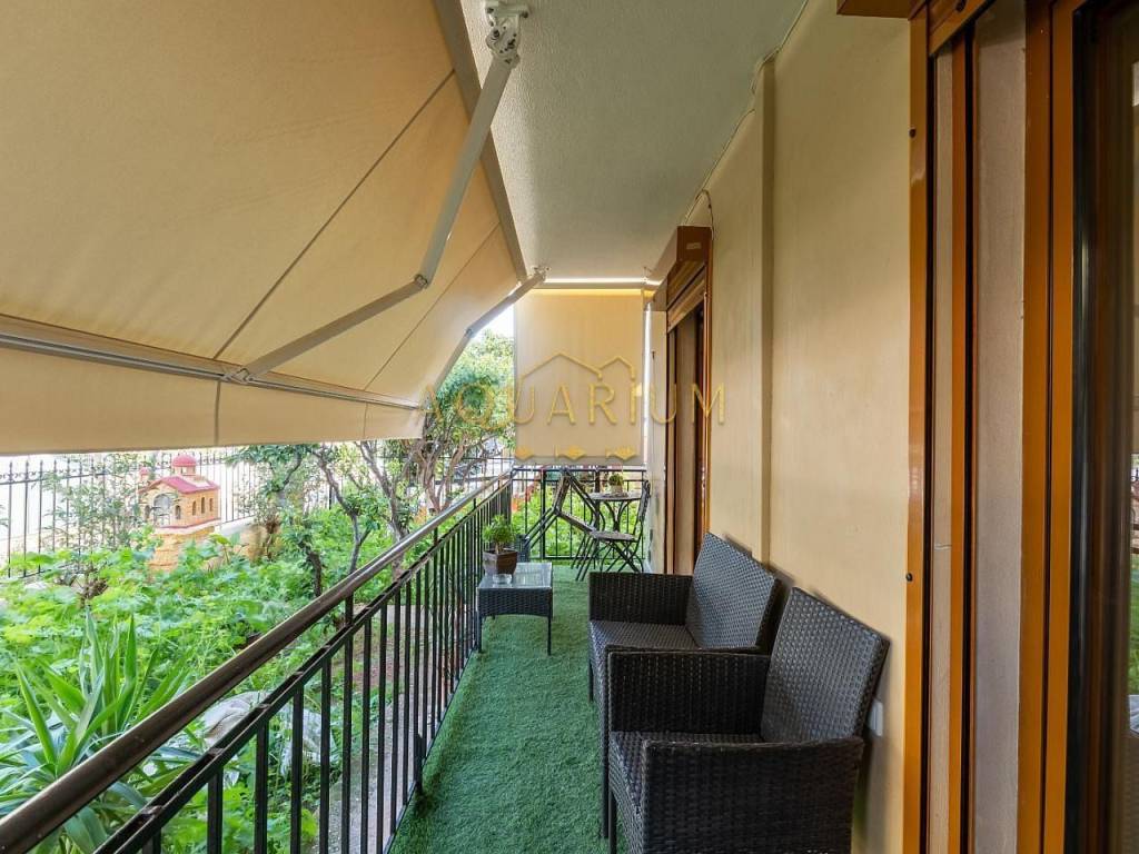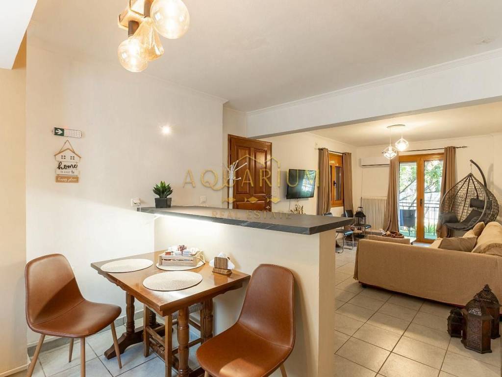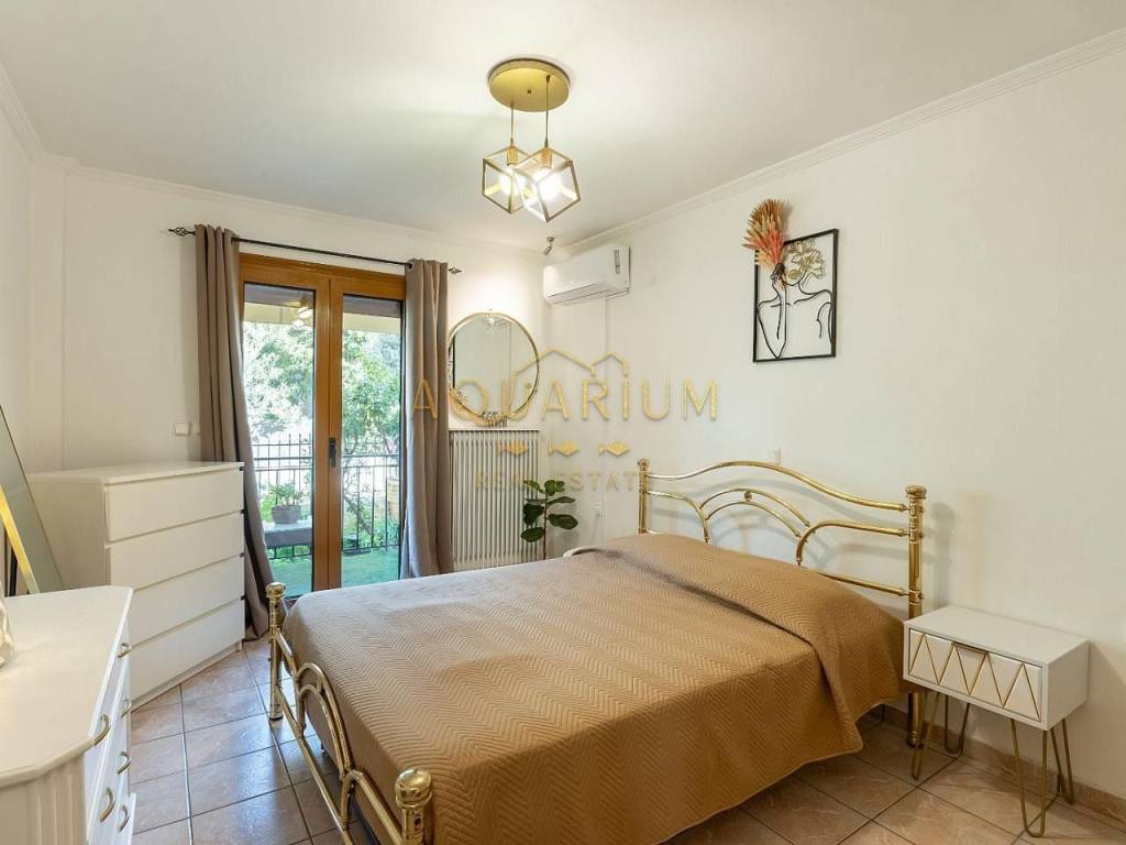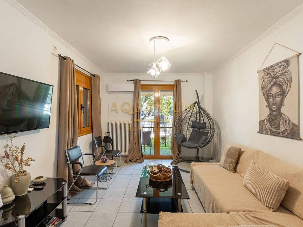 GLYFADA- Aixoni. Ground floor apartment 65sqm. It consists of a living room, kitchen, 1 bedroom, utility room that can be used as a separate room, 1 bathroom and a balcony in the garden. It is renovated and fully furnished and equipped with electrical appliances. Possibility of providing a covered parking space with an additional 100e/month. It is located in a quiet and green neighborhood, close to supermarkets and the Gounari market.