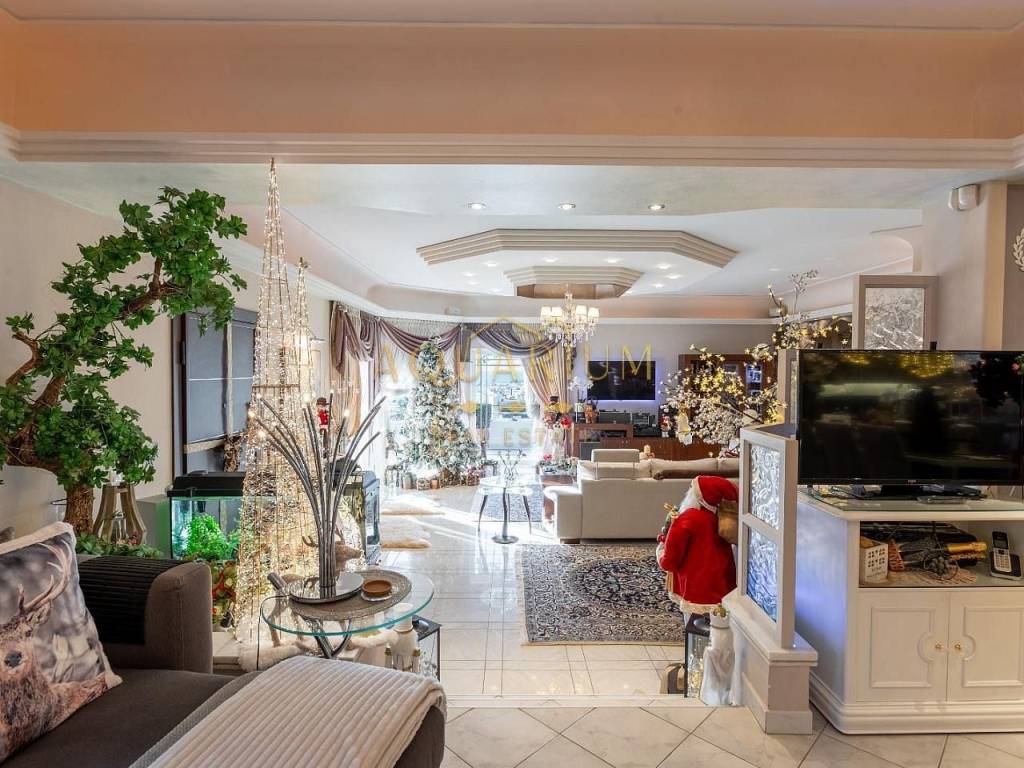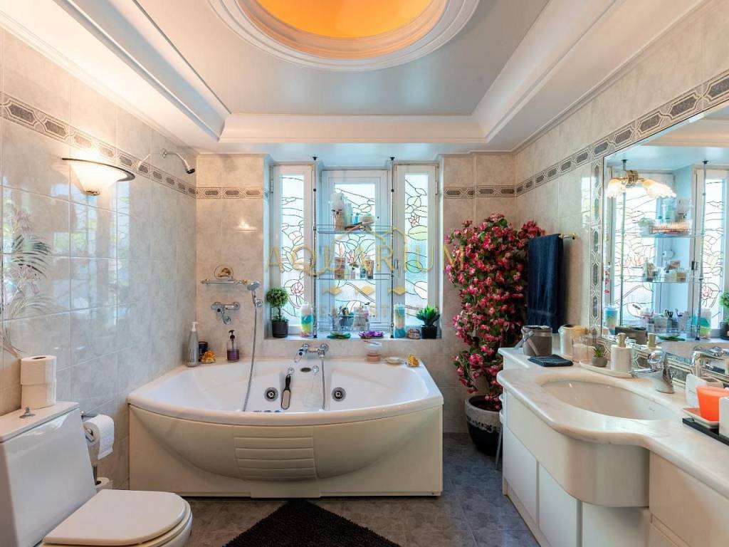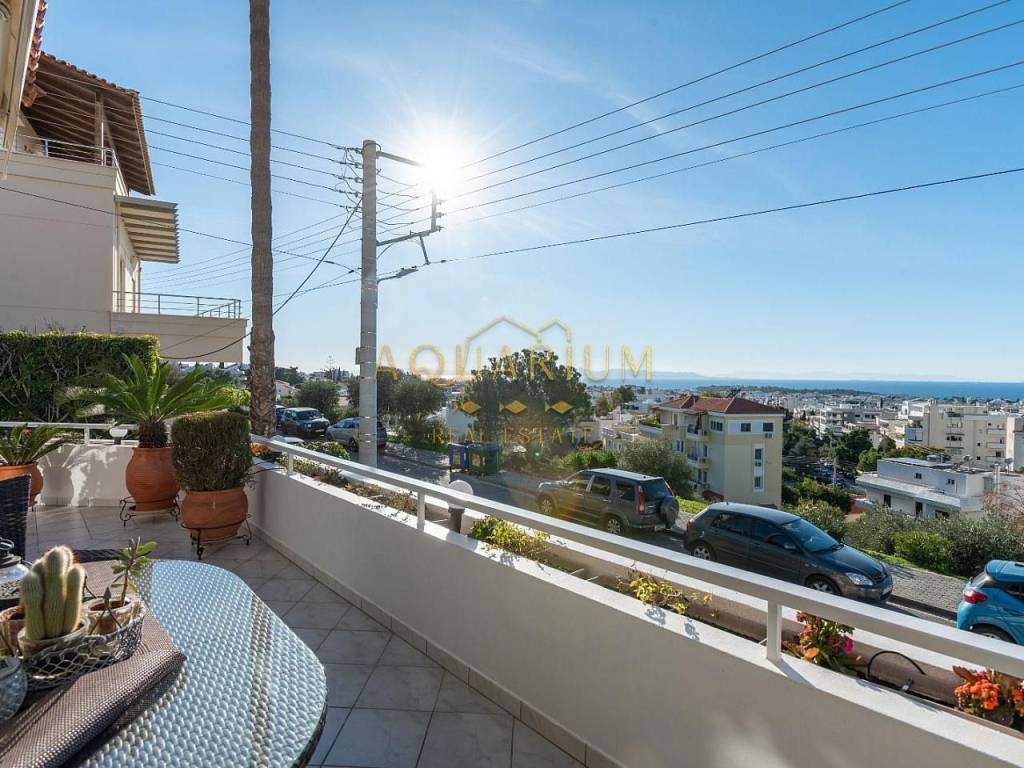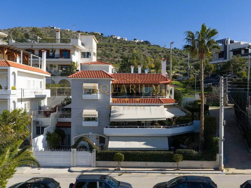 GLYFADA- Aixoni, classic maisonette 265 sq.m., ground floor & 1st floor with unlimited sea view. Consists of: Ground floor with open plan living room - dining room - sitting room - kitchen. 1st floor: 4 bedrooms (1 master with fireplace and bathroom with jacuzzi) and a shared bathroom. It has parking, storage room, lofts, garden around, fireplace, AC inverter cooling-heating in all areas, heating autonomy per floor, internal elevator, alarm, sound system installation (stereo & home cinema). Located in a VIP area with 24-hour security by state and private police Can also be delivered with furniture