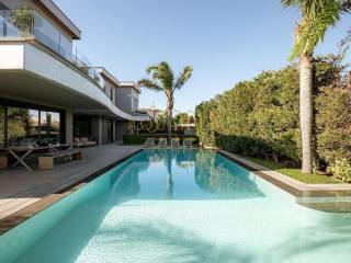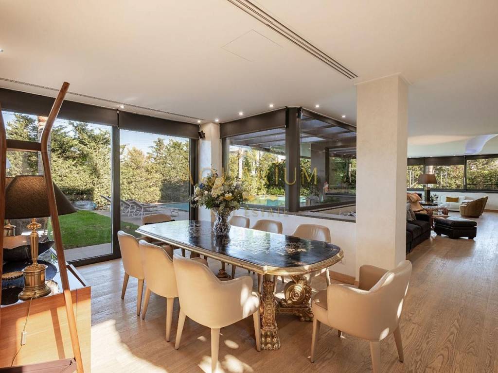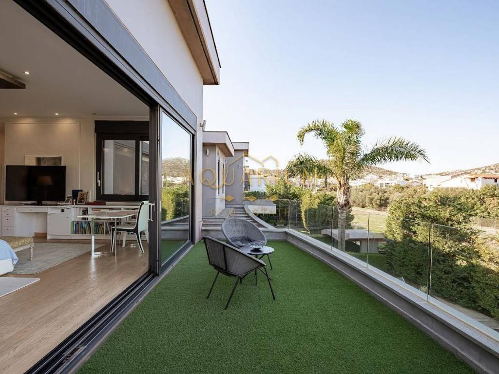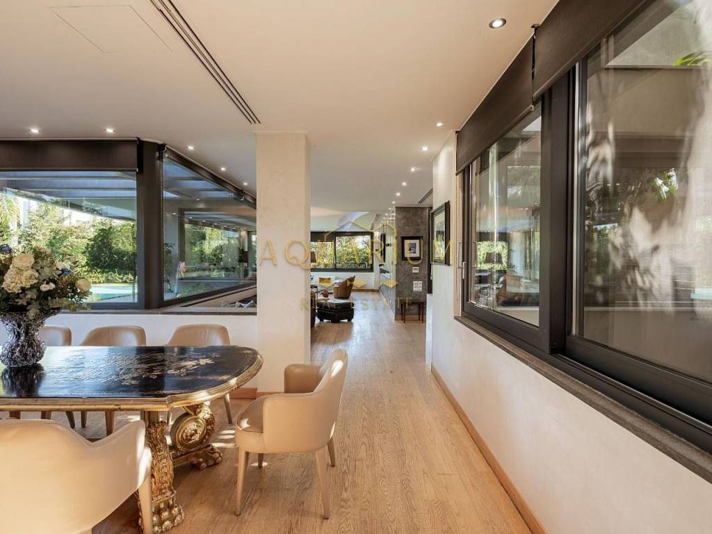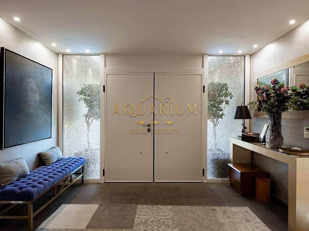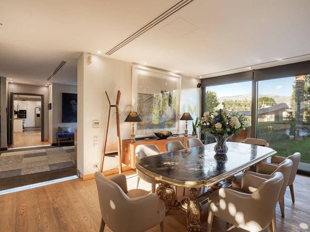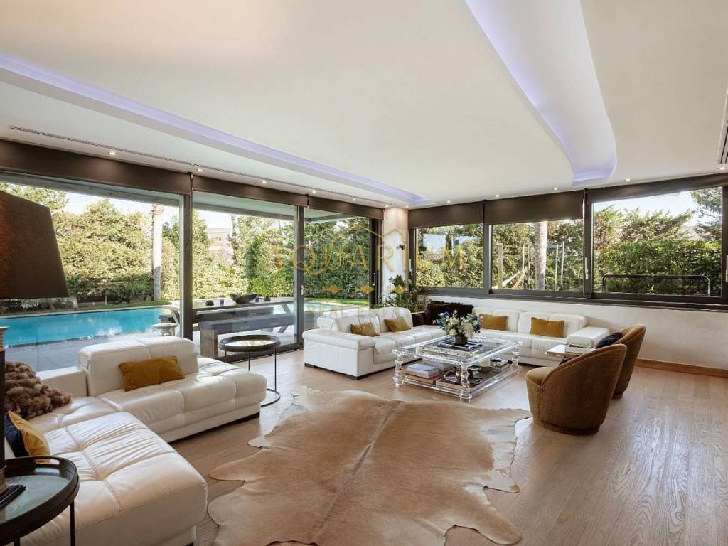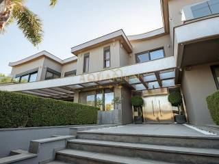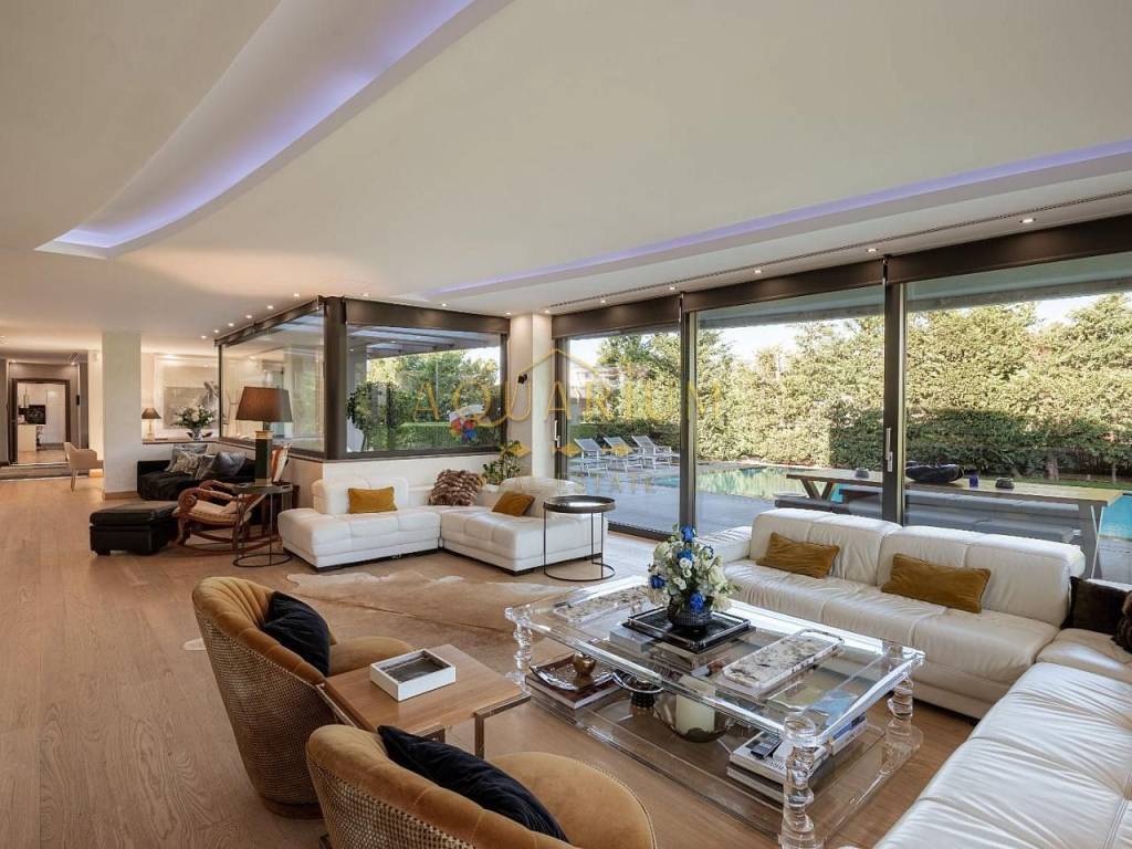 VARKIZA- Three-level villa 800 sq m. with swimming pool. Consists of: -Basement with 2 master bedrooms, office, home cinema, gym with glass on the pool, bathroom, 4 parking spaces, storage rooms, 2 patios that allow natural light, and a 2nd entrance that serves the pool. -Ground floor with reception area, living room, kitchen, dining room, bar, WC -1st floor with 1 large master bedroom with 2 walk in closets and a comfortable balcony, 2 more masters and 1 additional bedroom. It has a large courtyard with swimming pool and living room, internal elevator, and is available fully furnished and equipped. Located in a quiet area, just 3 minutes from the sea, and 2 minutes from the Center of Vari.