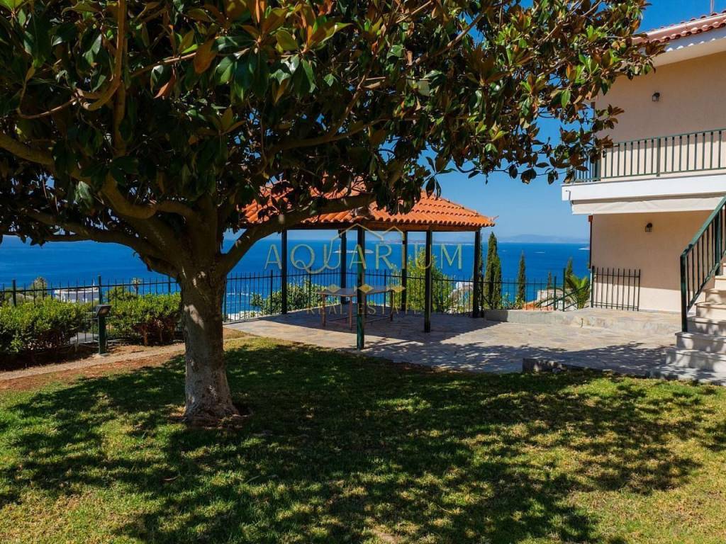 Seaside Residence with Stunning Views – Southeastern Riviera (Althea - Agia Marina) A rare opportunity to own a 300 sq.m. two-family residence, perched on the picturesque hill of Althea - Agia Marina, offering breathtaking sea views and a panoramic outlook stretching to Varkiza. Plot: 900 sq.m. (combination of 2 plots) Living space: 2 independent levels, 150 sq.m. each Layout (each floor): 2 bedrooms, 1 bathroom, 1 WC, open-plan kitchen, living room with fireplace, dining area Outdoor: Large garden, patio, BBQ area, private parking, space for a swimming pool Features & Amenities: Independent heating (oil) Solar water heater Air conditioning Alarm system 2 large storage rooms Boiler room Easy access, with only a short steep road (70m), fully compensated by the stunning location and serenity. Investment Potential: Significant future value due to the upcoming development of a luxury hotel complex on the beachfront and coves below Leof. Souniou (by HIG investment group), including an underground passage for safe pedestrian circulation. Location Highlights: Just 400m from the sea & public transport 600m from the local market of Agia Marina 7km from Varkiza 19km from Athens International Airport A high-quality, private construction offering tranquility, privacy, and unlimited potential for residential or investment use.