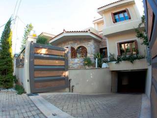 Two, 3 levels houses, around 268 m2 each, have been constructed on a 782 m2 plot, located in a very nice and quiet neighborhood in Dikigorika, Ano Voulas area. The Houses, (A), refers to the first house as you enter from the main entrance and is adjacent to the main street and (B), which has been built in the aft portion of the yard, are surrounded by the neighborhood’s garden and have view to the sea from the 2nd floor. House A which consists of: Elevated Ground Floor, 159 m2 with a very spacious and well-constructed living and dining room, made from first class materials. A daily sitting room is located to the south of the living room and it has an adjacent kitchen and daily dining room. Guest bedroom which can be also turned into an office with adjacent bath room. First floor, 74 m2, contains two very spacious master bed rooms, with wooden floors, Irocco AAA secured in position in a lattice arrangement of sea plywood of 25mm. One of the master bedrooms is fitted with walk in closet plus sufficient number of sets of closets. Wooden stairs, A quality of solid wood has been erected from the ground floor all the way up to the 2nd level, Second Floor, 37 m2, which is a compartment of two rooms arrangements: a bedroom and a sitting room and a spacious bath room. House B, as earlier described is of same almost size (268 m2) as house A, and has been constructed with the same quality of material and equipment. It is slightly differently arranged as to meet the space available. The living and dining room is adjacent to the daily sitting room and kitchen. House B has the advantage of the better view towards the sea. Both houses’ have a common swimming pool and their windows are of wooden construction and accommodate: central air conditioning system VRV which also can be used as heat pump, and a central heating system Tasso with fuel tank of 4000 lit capacity. It is worth further to describe that they are fitted with close circuit TV system by allocating 8 Cameras all over the field and internal control unit. Also, the houses have an internal communication system which gives the ability to answer calls from any place. Underground garage with parking places for both houses.