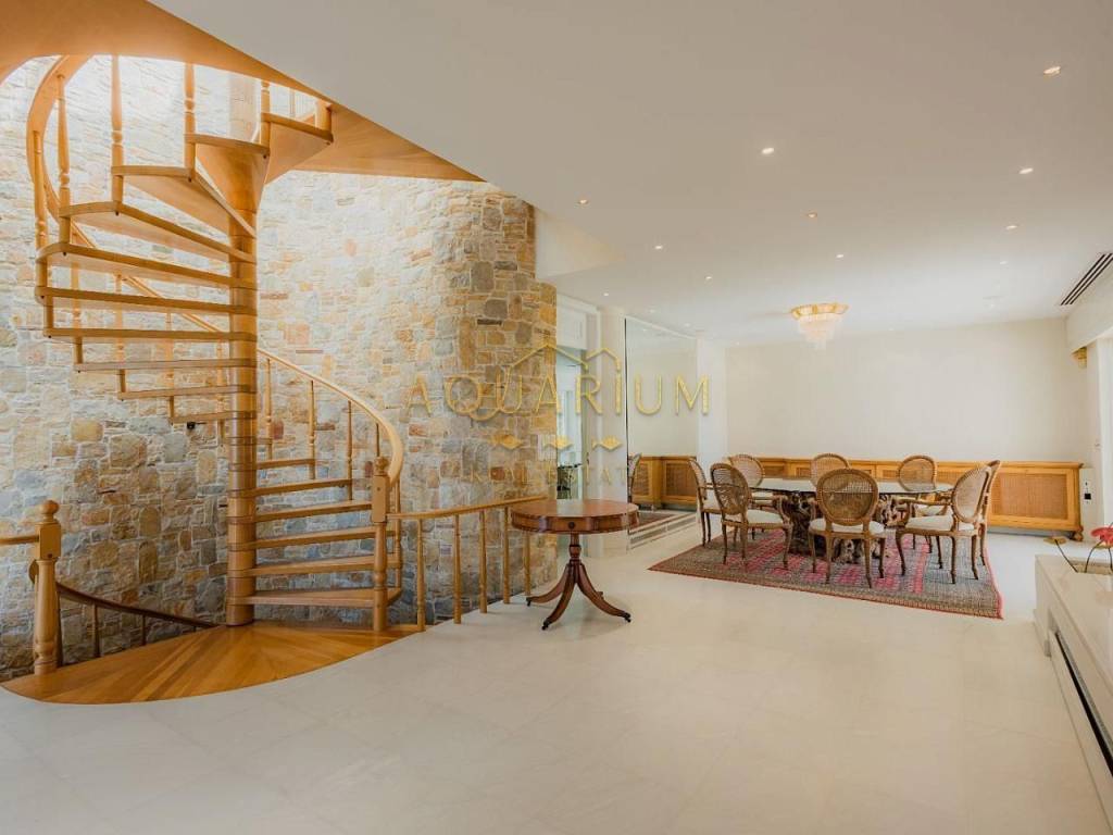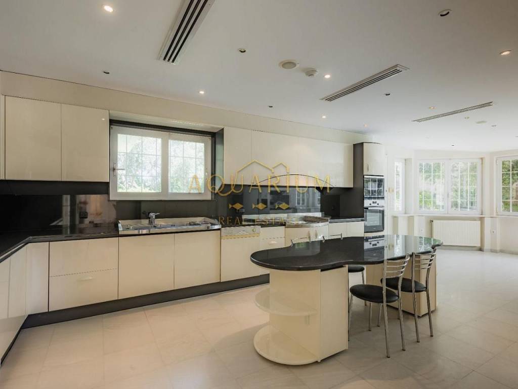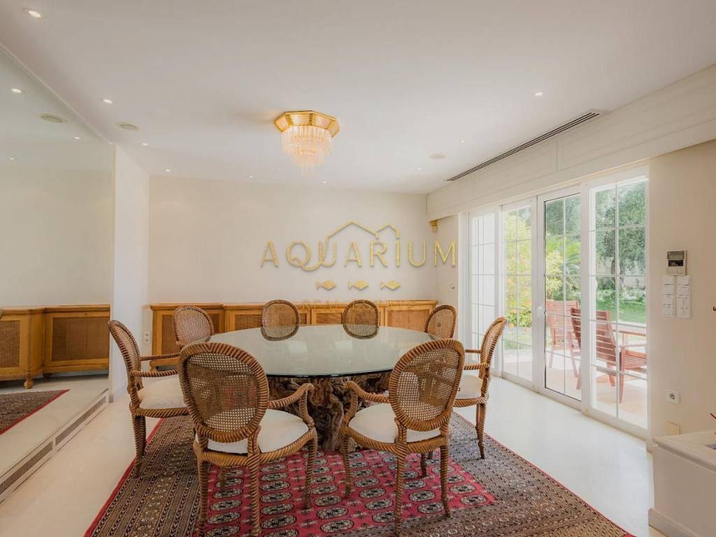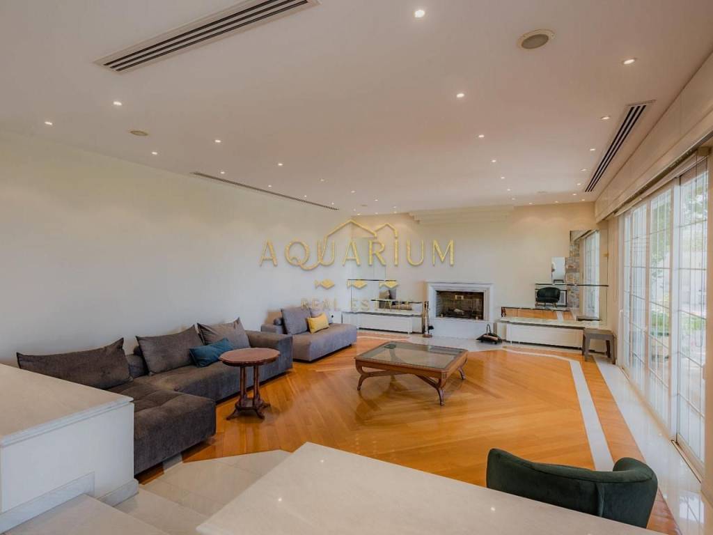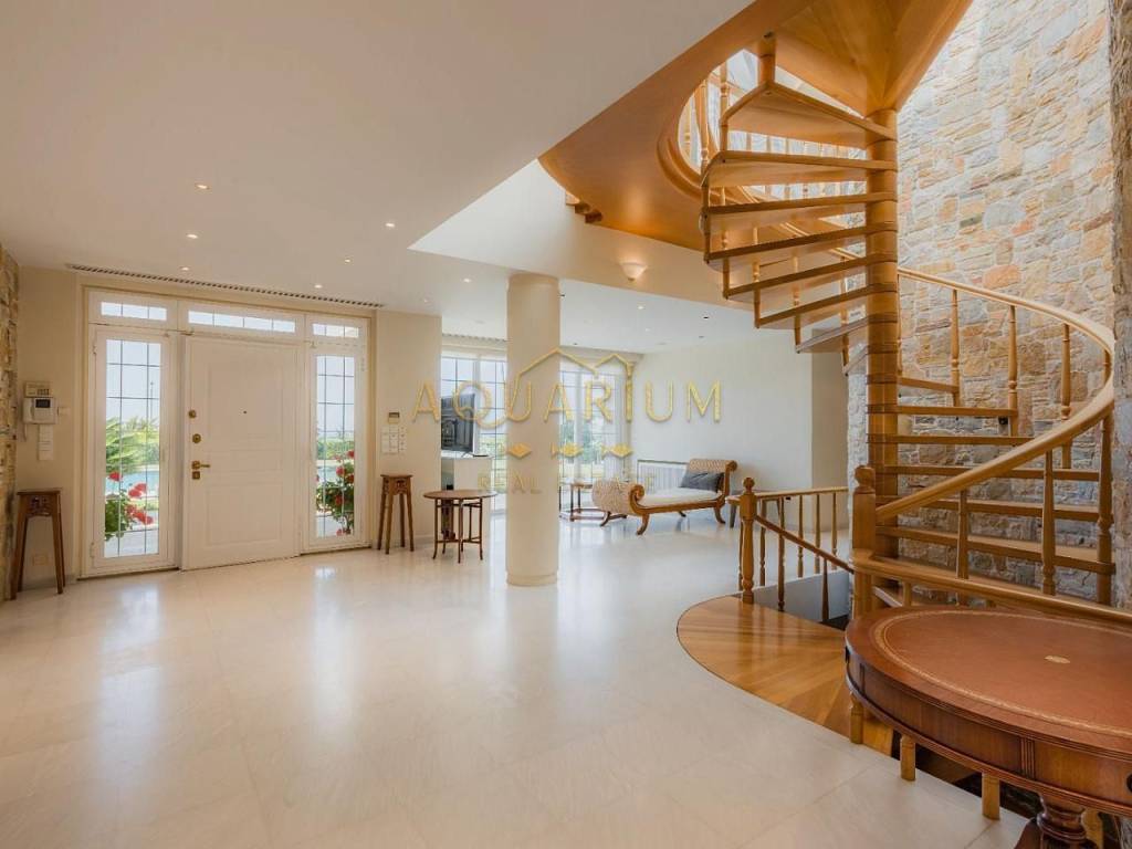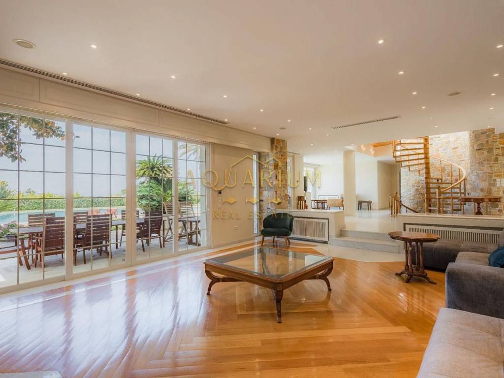 SARONIDA 820sq.m2, 3 level Villa on a 4000m2 plot in Saronida. It is located at an amazing location with a beautiful view of the sea. Just 50 meters from the sea. It has 7 bedrooms (1 master and 6 ensuites and 7 bathrooms), large living room, sitting and dining room, WC, elevator, maid's room, playroom with gym fully furnished, central heating and cooling system in all rooms and air condition units, large terraces, kitchen with built-in appliances, double glazing windows with electric shutters, large garden with a 150 sq.m2 pool, barbecue, tennis, basketball court & closed garage for 8 cars.