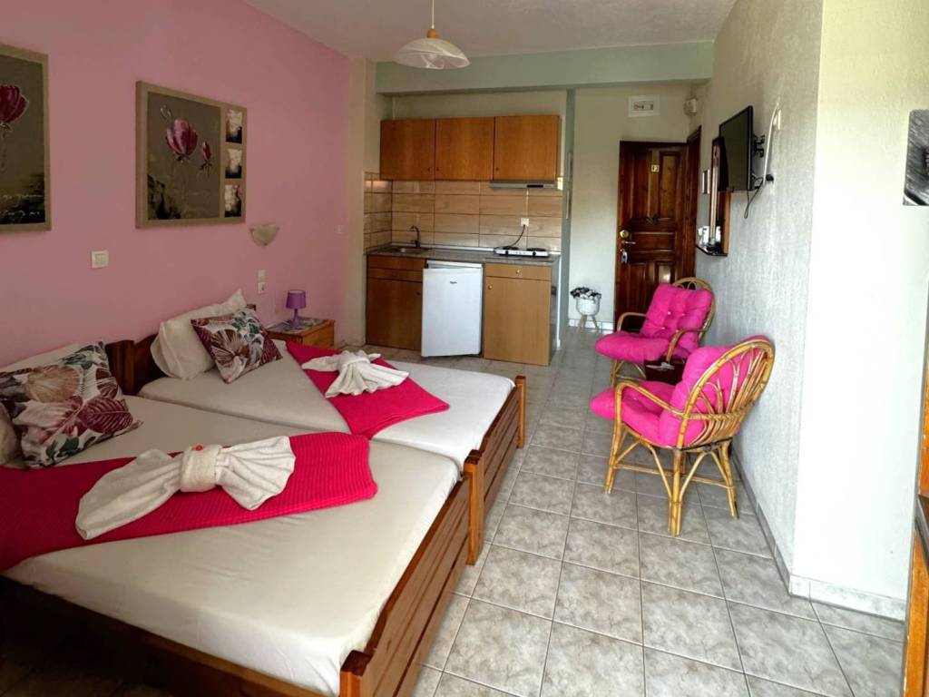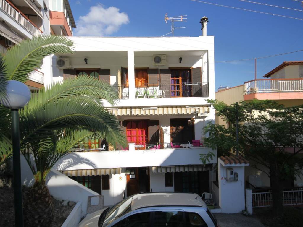 The property is located in Neos Marmaras of Sithonia, in a privileged position just 150 meters from the beach. On one side, it is surrounded by a pine forest, and on the other, by the sea. Apartments and studios from the courtyard side offer a side sea view. Above the top floor, there is a rooftop terrace with unobstructed sea views, suitable for installing a pergola or creating an additional relaxation area. The property has a total net surface of 420 m² (approximately 550 m² gross) and is built on a 212 m² plot. Year of construction: 2005. The building consists of 4 floors and includes 9 studios and 2 apartments, all holding a valid Greek National Tourism Organization (EOT) license for tourist rental. On the ground floor, there is a spacious 100 m² apartment consisting of 1 bedroom overlooking the courtyard with a bathroom featuring natural ventilation, 2 storage rooms, a living room, a kitchen with a dining area, and an additional bathroom. All units have access to a balcony. The units with side sea views are located on the courtyard side, where the boiler room is situated, and all bathrooms benefit from natural ventilation. The property is sold fully furnished and equipped. It is in relatively good condition and can continue operating for the next two years without additional investment, requiring only regular maintenance and management. The house has an installed piping network for central heating. It is connected to the municipal sewage system. This property represents an excellent investment opportunity, ideal for tourist rental and generating steady seasonal income. For more information and viewings: +30 697 576 7449