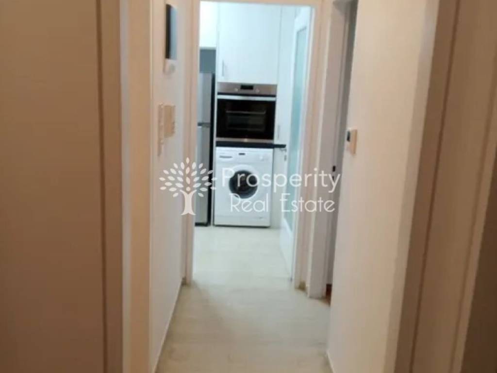 The apartment comprises an entrance hall, a spacious living room, a large bedroom, a separate kitchen, a bathroom, a loft storage area, and balconies off both the living room and bedroom with open square views. In 2022, a full renovation was completed, including new plumbing and electrical installations (with replacement of the electrical panel), a new kitchen and bathroom, new tiling, energy-efficient window frames with double glazing and insect screens, a new security entrance door, a new wardrobe, polished wooden floors, and installation of a video intercom system. The property is offered fully furnished and equipped with all electrical appliances.