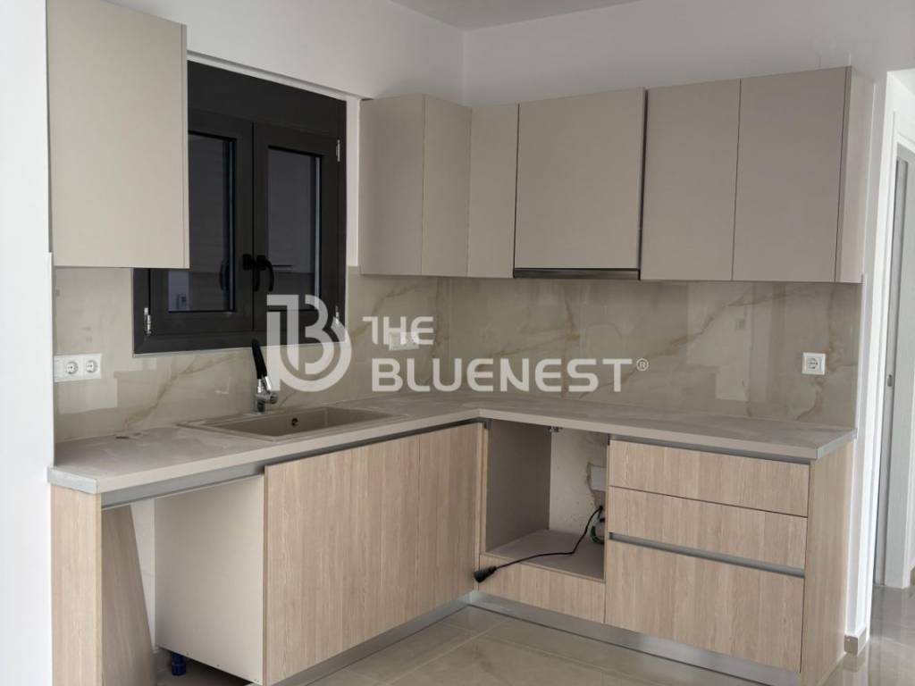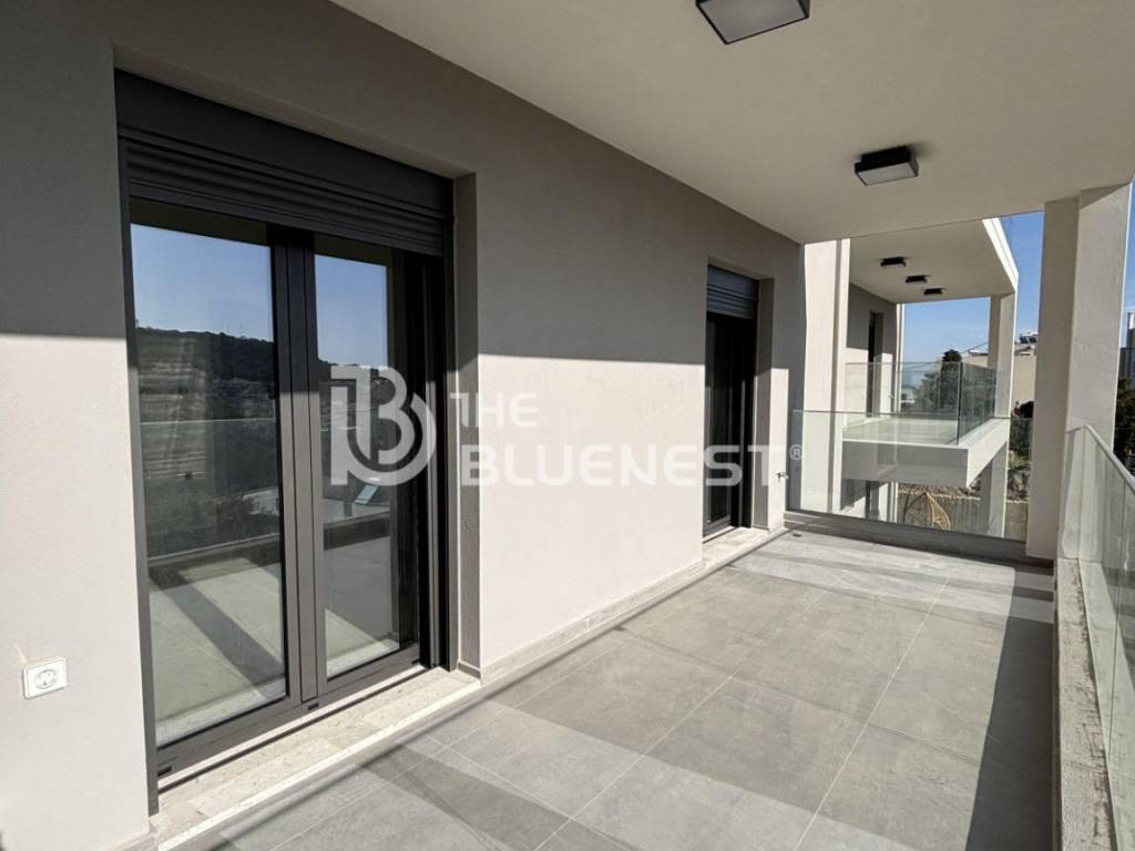 Inside the apartment, there are two comfortable bedrooms with built-in wardrobes and one fully equipped bathroom, designed with modern aesthetics and quality materials. The unified balcony surrounds the space and offers sea views, creating the ideal setting for moments of relaxation.