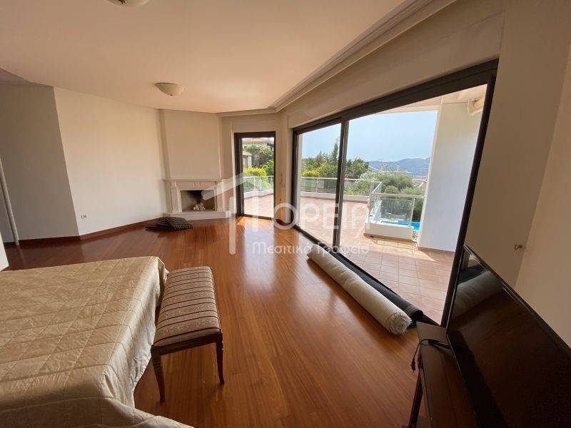 Property Code: 13675 - Villa FOR RENT in Rest of Attica Saronida for € 4.500 . This 520.00 sq. m. furnished Villa is on the Ground floor and features 5 Bedrooms, Livingroom, Kitchen, 4 bathrooms and a WC. The property also boasts Heating system: Autonomous heating - Oil, marble and wood floor, view of the Sea, Window frames: Aluminium, Security door, parking, a storage unit sqm, garden, fireplace, A/C, alarm system, electrical appliances, awnings, insect screens, double-glazed windows, solar-powered water heater, playroom, open space, optical fiber, balconies: 85 sqm. The building was constructed in 2006 Plot area: 850 s.q. . Building Energy Rating: D