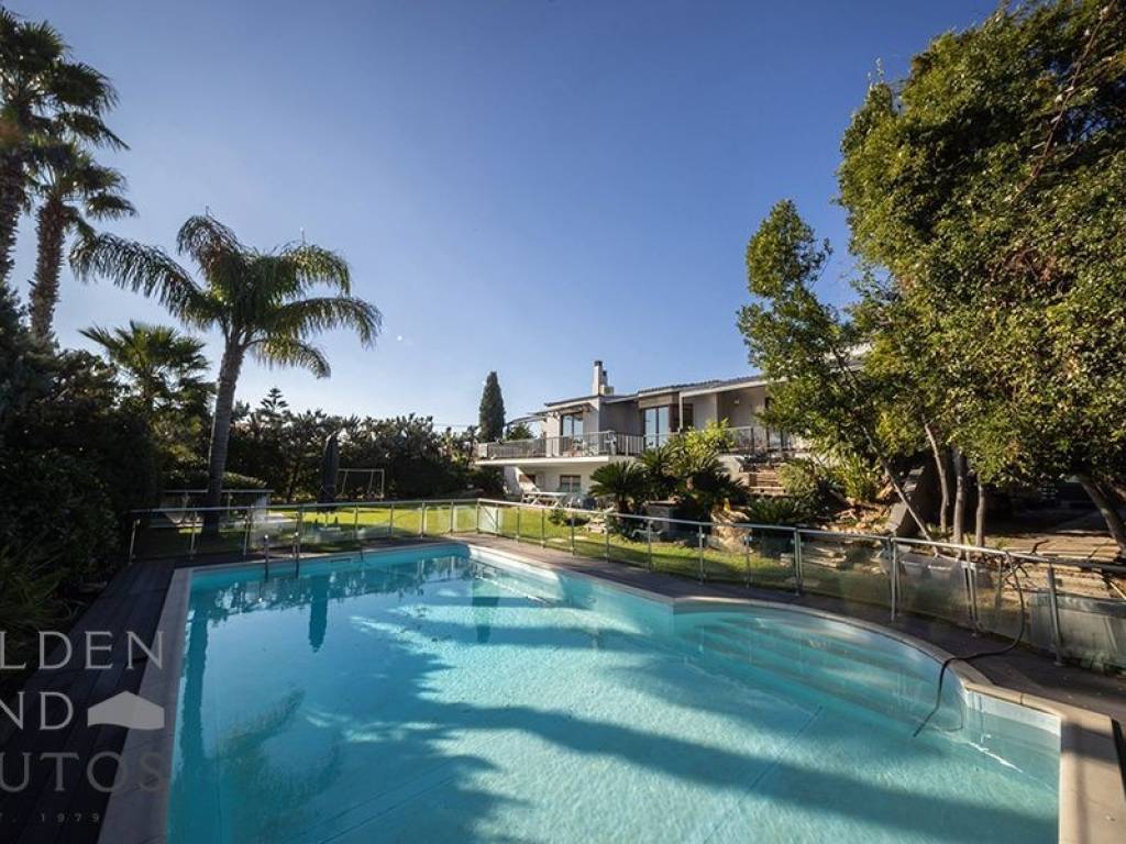 A spacious and impressive 600 sq.m. villa is available for sale, arranged over two levels (ground floor and first floor) on a plot of approximately 1,155 sq.m., located in Vari – Varkiza, just 250 meters from the sea and 500 meters from the town center. The property features façade frontage, an east orientation, and is bright and airy, offering open views toward the mountains and a strong sense of privacy in a prime location along the Athenian Riviera. The residence includes a total of 6 bedrooms, 5 of which are master suites, 6 bathrooms, 2 WCs, 2 fully equipped kitchens, and 2 spacious living rooms, along with 4 parking spaces (2 underground and 2 pilotis). Main living areas cover 574 sq.m., with an additional 140 sq.m. of auxiliary spaces. The ground floor hosts a comfortable living area, 2 master bedrooms, a staff/service room, WC, full kitchen, storage spaces, and parking, with the potential to be converted into an independent apartment. The first floor comprises the main residence with a very large living–dining area and 3 additional master bedrooms, allowing the primary home to function on one level. The property also includes an attic, internal staircase, and internal elevator. Built in 2002 and maintained in good condition, the villa offers autonomous oil heating with radiators, air conditioning, solar water heater, and boiler. It features wooden frames with triple-glazed windows, while flooring consists of tiles, wood, and marble. Additional amenities include a swimming pool, expansive landscaped garden with grass and trees, dual street access, storage rooms, maid’s quarters, security door, alarm system, CCTV and security cameras, fire extinguishers, electric shutters, water bore, three-phase electricity, internet connection, and pet-friendly surroundings. This is an ideal choice for families or buyers seeking a luxurious and comfortable home near the sea, with generous indoor and outdoor spaces and excellent privacy.