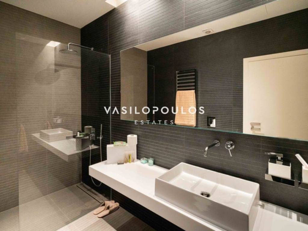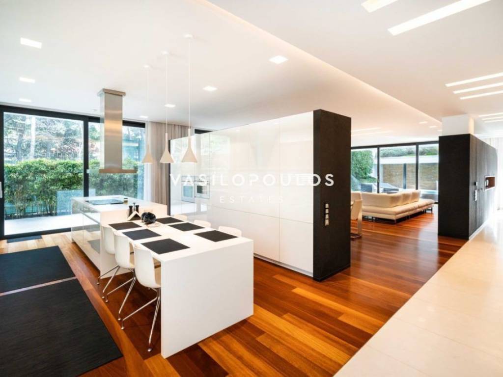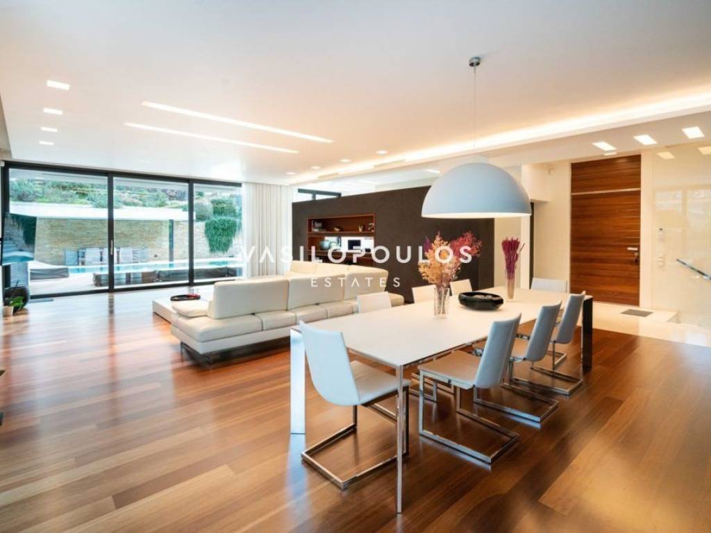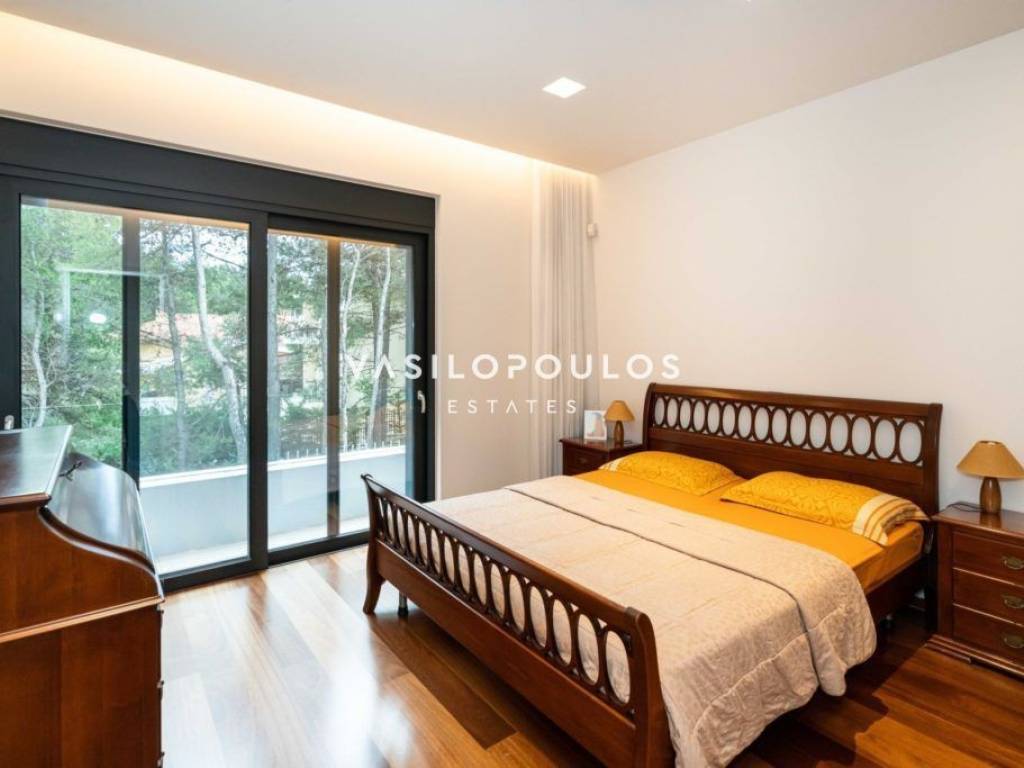 Σε προνομιακή και ήσυχη τοποθεσία στον Διόνυσο, με εύκολη πρόσβαση σε βασικές υποδομές, διατίθεται πλήρως επιπλωμένη μονοκατοικία τριών επιπέδων συνολικής επιφάνειας 572 τ.μ., σε οικόπεδο 806 τ.μ., σύγχρονης και minimal αρχιτεκτονικής. Η κατοικία κατασκευάστηκε για ιδιοκατοίκηση, με εξαιρετικής ποιότητας υλικά και ιδιαίτερη προσοχή σε κάθε λεπτομέρεια. Το ισόγειο διαθέτει φωτεινούς χώρους υποδοχής με σαλόνι και τραπεζαρία ενιαίας διάταξης και τζάκι βιοαιθανόλης, με άμεση σύνδεση με τη πισίνα. Στο ίδιο επίπεδο βρίσκονται πλήρως εξοπλισμένη μοντέρνα κουζίνα με χώρο καθημερινής τραπεζαρίας, WC και χώρος γραφείου. Ο πρώτος όροφος περιλαμβάνει τρία master υπνοδωμάτια, εκ των οποίων το ένα με walk-in closet, με άνετους αποθηκευτικούς χώρους και υψηλό επίπεδο άνεσης. Το κατώτερο επίπεδο, με ανεξάρτητη είσοδο, διαθέτει πλήρως εξοπλισμένο γυμναστήριο, βοηθητικούς και αποθηκευτικούς χώρους, kitchenette, μπάνιο καθώς και κλειστό χώρο στάθμευσης τριών θέσεων. Όλα τα επίπεδα συνδέονται με εσωτερική σκάλα και ανελκυστήρα. Η μονοκατοικία στον Διόνυσο διαθέτει ενδοδαπέδια θέρμανση με αντλίες θερμότητας και fan coil units για ψύξη-θέρμανση, εξασφαλίζοντας υψηλή ενεργειακή απόδοση και άνεση καθ’ όλη τη διάρκεια του έτους. Πρόκειται για μια ιδιαίτερα ποιοτική και πλήρως εξοπλισμένη μονοκατοικία στον Διόνυσο, ιδανική για όσους αναζητούν σύγχρονη κατοικία υψηλών προδιαγραφών σε περιβάλλον φυσικής ομορφιάς.