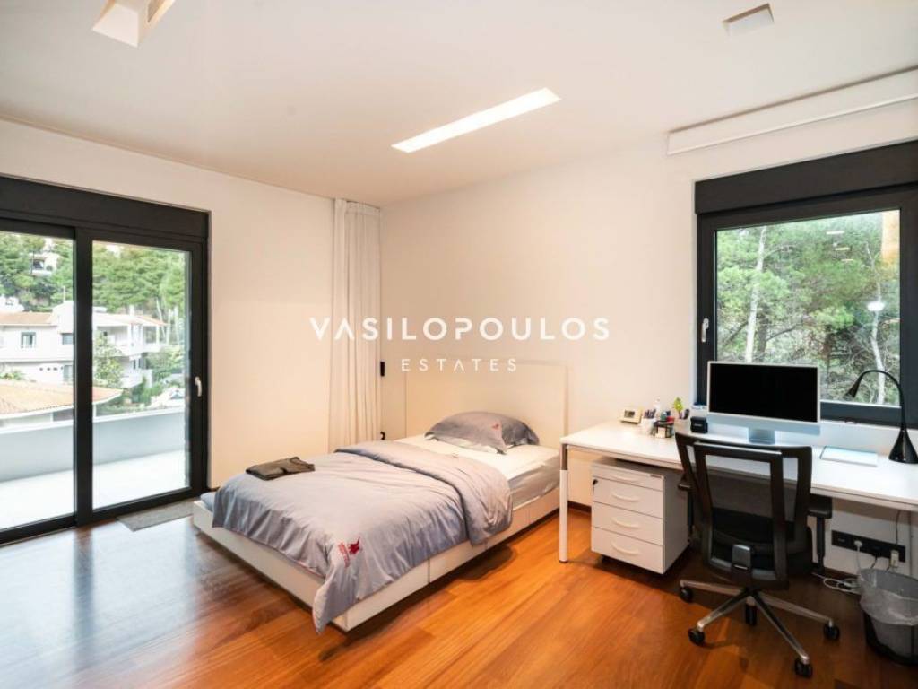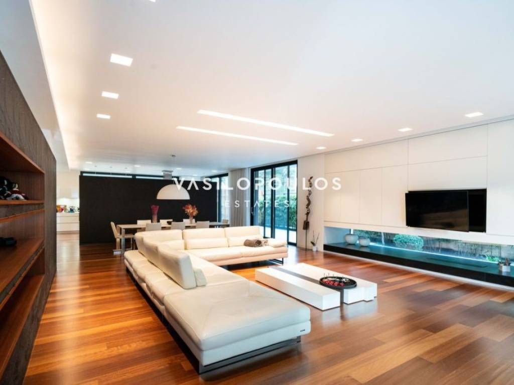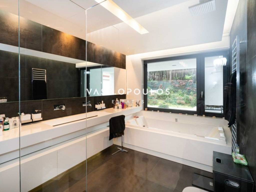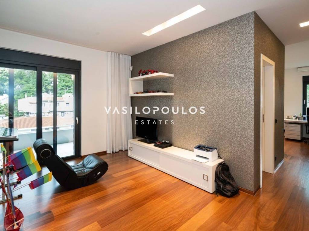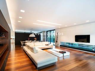Σε προνομιακή και ήσυχη τοποθεσία στον Διόνυσο, με εύκολη πρόσβαση σε βασικές υποδομές, διατίθεται πλήρως επιπλωμένη μονοκατοικία τριών επιπέδων συνολικής επιφάνειας 572 τ.μ., σε οικόπεδο 806 τ.μ., σύγχρονης και minimal αρχιτεκτονικής. Η κατοικία κατασκευάστηκε για ιδιοκατοίκηση, με εξαιρετικής ποιότητας υλικά και ιδιαίτερη προσοχή σε κάθε λεπτομέρεια. Το ισόγειο διαθέτει φωτεινούς χώρους υποδοχής με σαλόνι και τραπεζαρία ενιαίας διάταξης και τζάκι βιοαιθανόλης, με άμεση σύνδεση με τη πισίνα. Στο ίδιο επίπεδο βρίσκονται πλήρως εξοπλισμένη μοντέρνα κουζίνα με χώρο καθημερινής τραπεζαρίας, WC και χώρος γραφείου. Ο πρώτος όροφος περιλαμβάνει τρία master υπνοδωμάτια, εκ των οποίων το ένα με walk-in closet, με άνετους αποθηκευτικούς χώρους και υψηλό επίπεδο άνεσης. Το κατώτερο επίπεδο, με ανεξάρτητη είσοδο, διαθέτει πλήρως εξοπλισμένο γυμναστήριο, βοηθητικούς και αποθηκευτικούς χώρους, kitchenette, μπάνιο καθώς και κλειστό χώρο στάθμευσης τριών θέσεων. Όλα τα επίπεδα συνδέονται με εσωτερική σκάλα και ανελκυστήρα. Η μονοκατοικία στον Διόνυσο διαθέτει ενδοδαπέδια θέρμανση με αντλίες θερμότητας και fan coil units για ψύξη-θέρμανση, εξασφαλίζοντας υψηλή ενεργειακή απόδοση και άνεση καθ’ όλη τη διάρκεια του έτους. Πρόκειται για μια ιδιαίτερα ποιοτική και πλήρως εξοπλισμένη μονοκατοικία στον Διόνυσο, ιδανική για όσους αναζητούν σύγχρονη κατοικία υψηλών προδιαγραφών σε περιβάλλον φυσικής ομορφιάς.