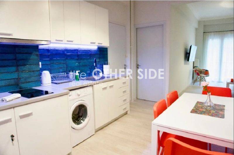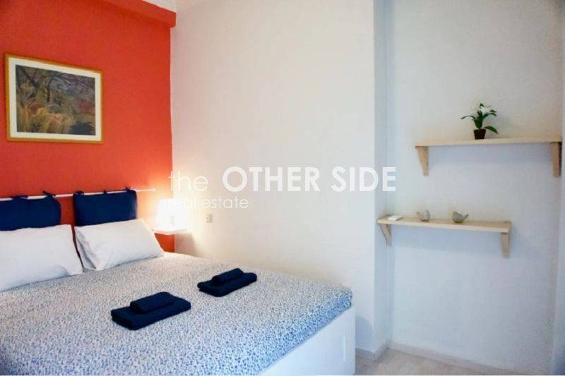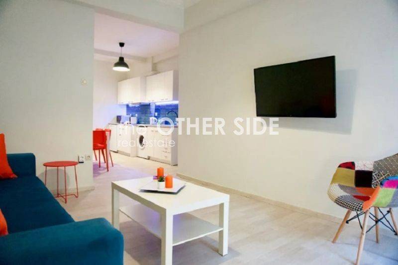 EXARCHIA - MUSEUM, 49m² completely renovated apartment, raised ground floor, fully furnished and equipped with all electrical appliances, excellent condition, high ceiling, bright, quiet, 1 bedroom, open plan living room-kitchen, bathroom, wooden floor and tiles, oil central heating, air conditioning, aluminum frames, double glazing, security door, transport (METRO 850m), markets, square, park, hill, 260m from future Metro stop, rented for €550 per month until 2028,