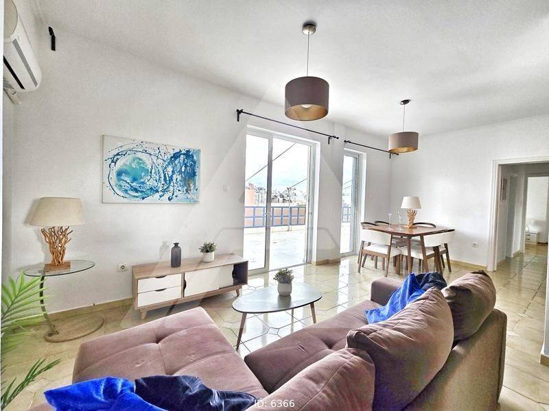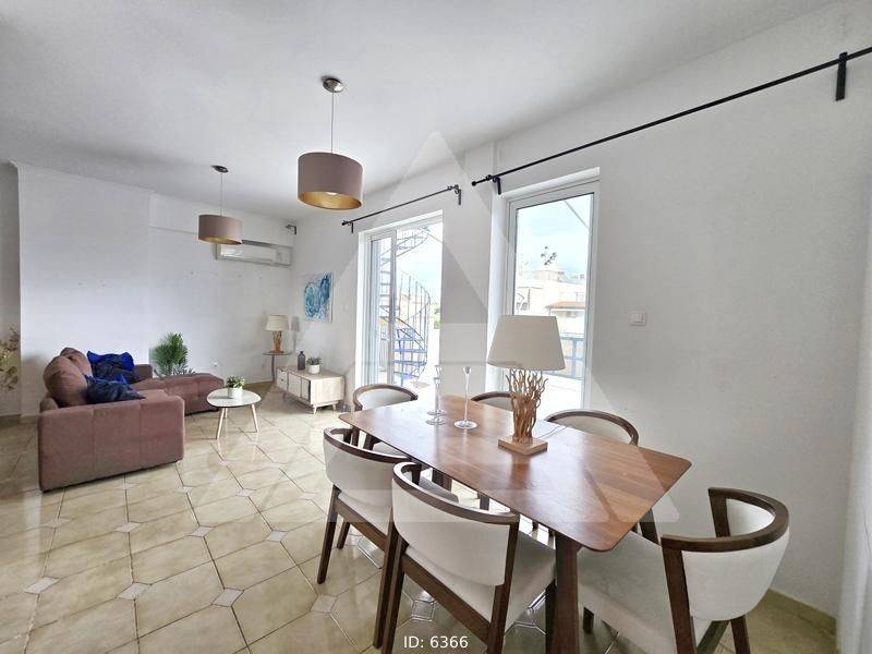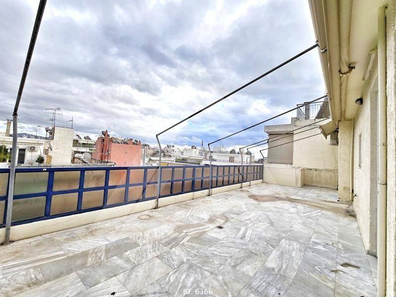 Piraeus, Neo Faliro - Floor Apartment 95sqm bedrooms 3, levels 1, 6th, penthouse, very good condition, year built 1987, energy class D, living room, kitchen, bathroom, heating type: no heating (air condition), a/c type splits, parking ground floor,2, quiet, dual aspect apartment, luminous, unobstructed view, frontage, solar heater, balconies, large balconies, balcony 80sqm, tents, elevator, aluminum frames, double glazed windows, door screen, wood & marble floors, handicap ramp, video doorbell, residential zone, southern orientation, access from asphalt, close to tram station (up to 200m), close to market (up to 100m), close to hospital (up to 200m), close to school (up to 100m), close to metro/train (up to 200m), close to sea (up to 500m).