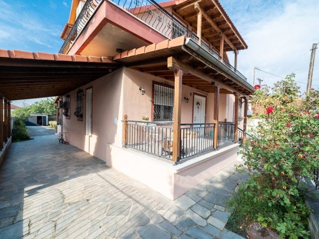 Two-story detached house for sale with a total area of 175 sq.m. on a plot of 671 sq.m. in Doxato, Drama. The raised ground floor of the house is a separate independent apartment with an area of 97 sq.m. and consists of a living room, a dining room, a kitchen, a hall, two bedrooms, a bathroom, and a WC. The floors are tiled and wood, and the exterior aluminum frames are double-glazed. It has three air conditioners and solar panels. The first-floor apartment has an area of 78 sq.m. and consists of a living room, a kitchen, a hallway, three bedrooms, a large bathroom, and a smaller bathroom. The floors are tiled and the exterior aluminum frames are double-glazed. It has terraces and a large courtyard with automatic watering and a 32 sq.m. closed garage. To view the property, you must present your police ID.
