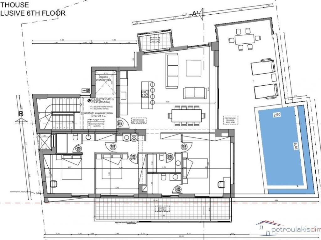 Luxury whole-floor apartment for sale in an under-construction residential building in Nea Chora, just 140 meters from the sea and next to the Old Town of Chania. The property is part of a modern, well-organized residential complex built to high specifications, featuring top-quality materials and a communal swimming pool. The apartment is located on the 6th floor and offers a net interior area of 136 sq.m., a south-facing balcony of 21 sq.m., a spacious veranda of 86 sq.m. and a private swimming pool of 19 sq.m. It consists of an open-plan kitchen and living area, three bedrooms, and three bathrooms. It also features autonomous heating with a heat pump for both cooling and heating, as well as a storage room. An ideal choice for private residence or investment in one of the most privileged locations in Chania. Delivery date: End of 2027 Asking price: €1,600,000 Property code: 2002. Agency fee 2.5% (VAT included) More properties www.petroulakis-realestate.gr Petroulakis Dimitris - Real Estate Agency 22 Voloudakidon str., Chania, Crete, Greece petroulakis.dim@gmail.com Tel.: +30 2821044455 Mob.: +30 6946284629 / +30 6977220559 In order to see the property, it is necessary to have your ID or Passport according to Law 4072 / 11-4-2012 Government Gazette 86A