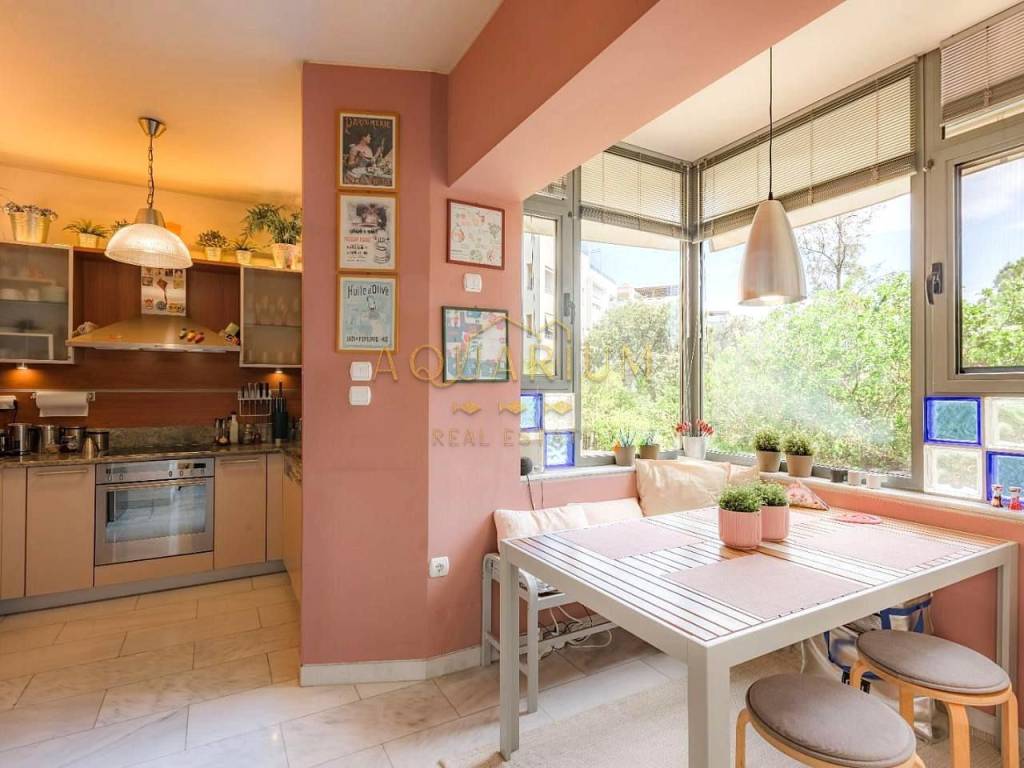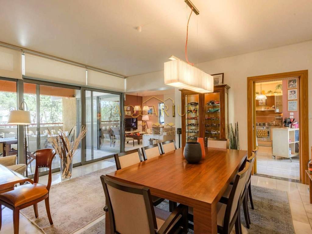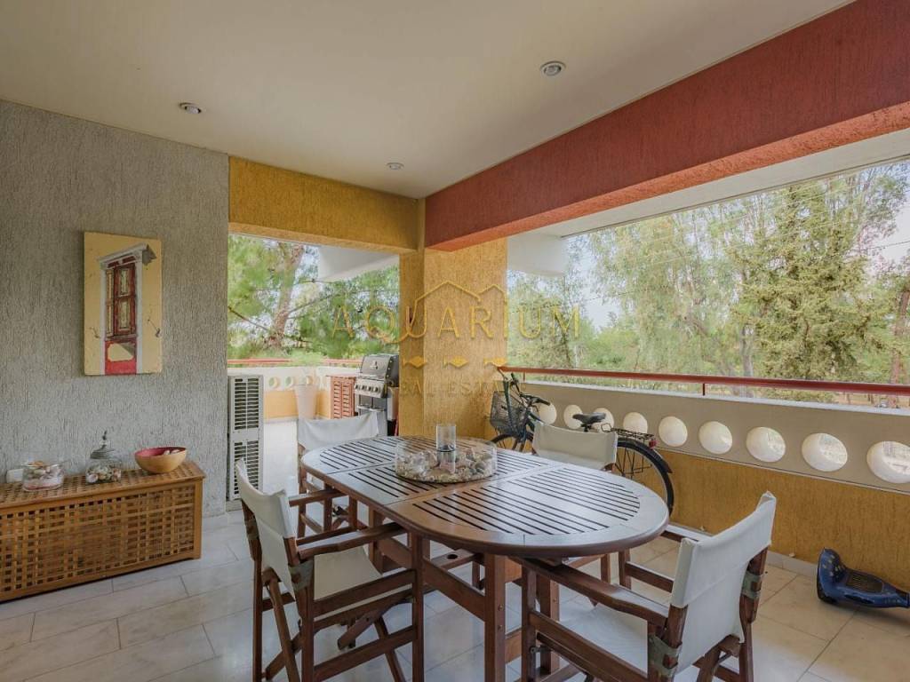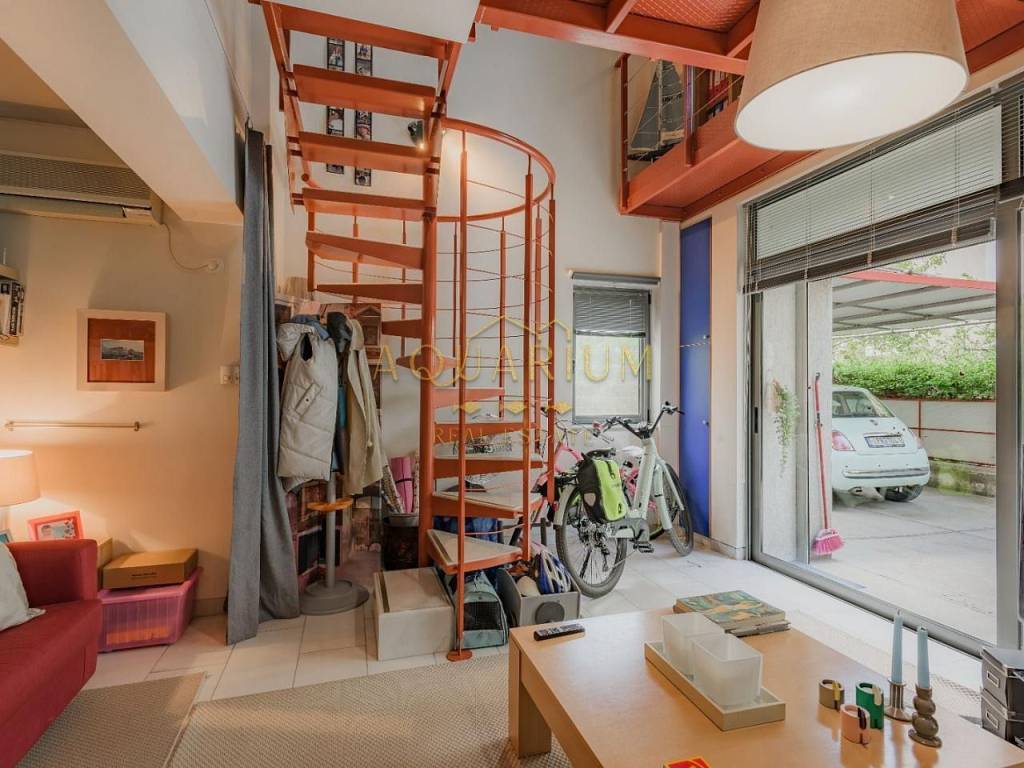 VOULA (Lower area) – Bordering Glyfada Located in a modern, well-maintained building with a small number of owners, this maisonette spans the 1st floor and ground level, offering a total gross area of 176 sq.m.. The property is bright, in excellent condition, and features a well-thought-out layout with a northeastern orientation. The first floor includes a spacious living room with a fireplace, a large front-facing veranda, a dining area, a separate kitchen with breakfast space, two bedrooms (one of which is a master), an additional bathroom, and an open-plan office space. A modern internal staircase leads to the ground floor studio, comprising a sitting area, kitchenette, and bathroom. The studio also features its own private entrance from the ground level and opens out to a beautiful garden and covered parking spaces. Additional features include: Autonomous oil heating Air conditioning Alarm system High-quality marble and oak flooring Awnings Ideally located within walking distance of the local market and the sea, and just minutes away from central Glyfada.