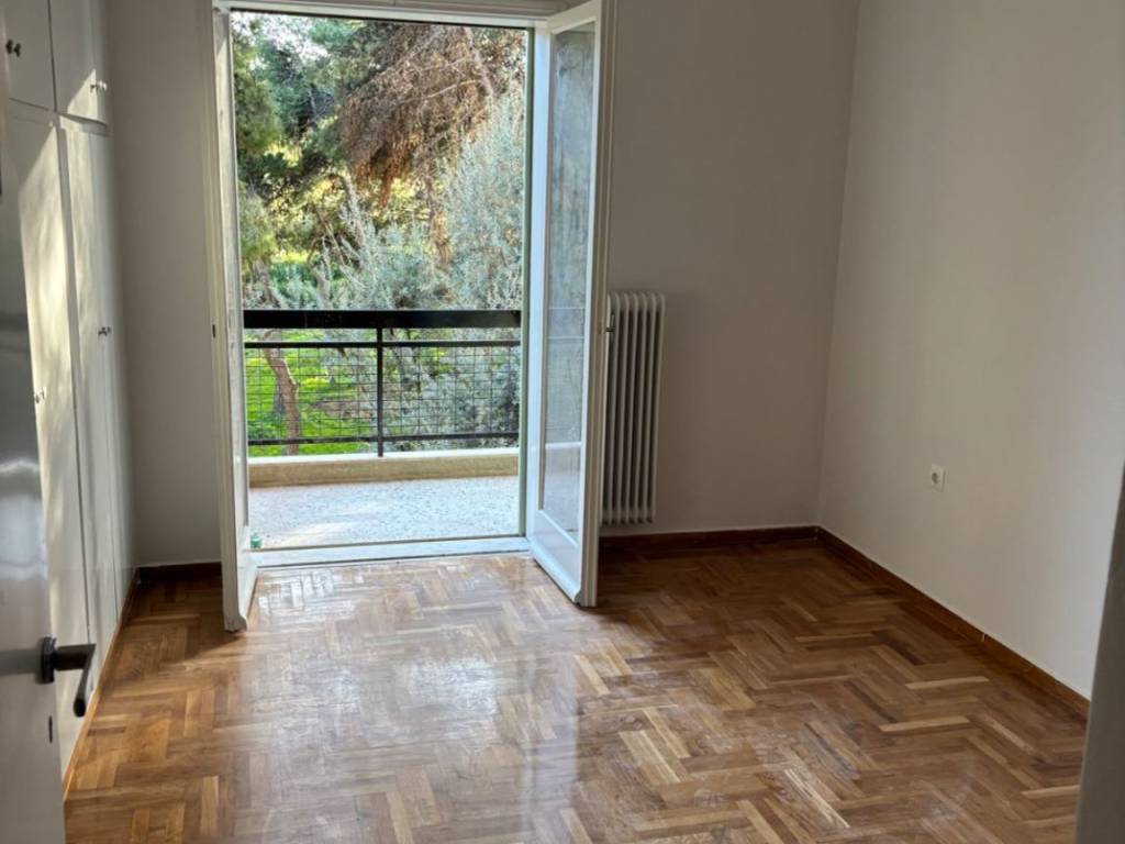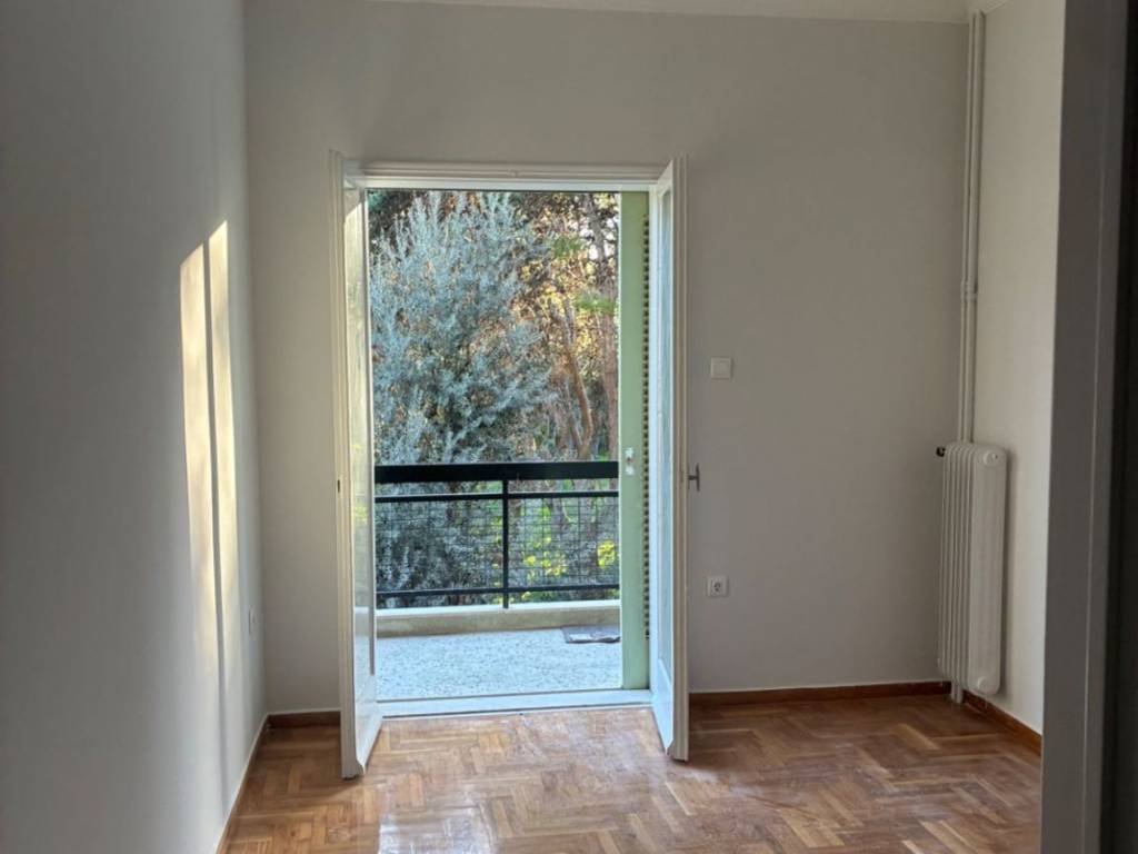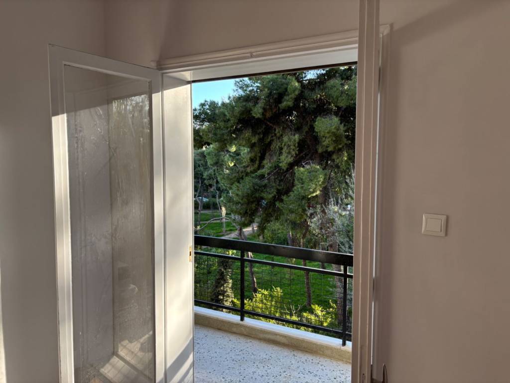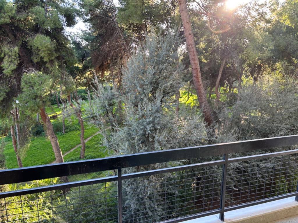 Third-floor apartment, 55 square meters, with a view and direct access to the Ilisia Grove. It consists of one bedroom, a living room, a spacious reception area, a separate kitchen, and a renovated bathroom.
