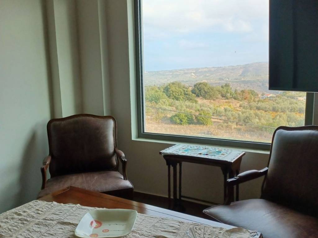 Luxurious fully furnished two floors house, with two bedrooms and two bathrooms. Located in a very quiet area in the picturesque lush green village of MAZA APOKORONOU between Chania and Rethymno. Distance from Georgioupolis beach only 10 minutes (8 km). The house has solar panels that cover all energy needs including heating and cooling. Underfloor heating with a heat pump and additional air conditioning with fan coils also with a heat pump. It has an energy fireplace and a solar water heater.There are mosquito screens on all doors and windows. The house has a large terrace with unlimited view, a barbeque and covered parking place. There is a possibility of giving you part of the garden to plant your vegetables. The price includes INTERNET. Distances from Points of Interest Main Cities & Transportation • Chania (center): 35-40 minutes • Rethymno (center): 30-35 minutes • Souda Port: 30 minutes • Chania Airport (CHQ): 45 minutes Services – Everyday Life • Supermarket / Pharmacy: 3.7 km • Chania Hospital: ~35 minutes