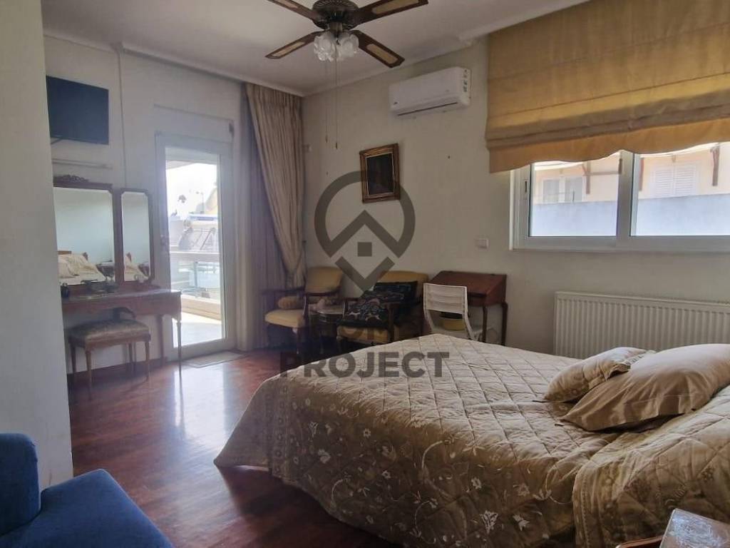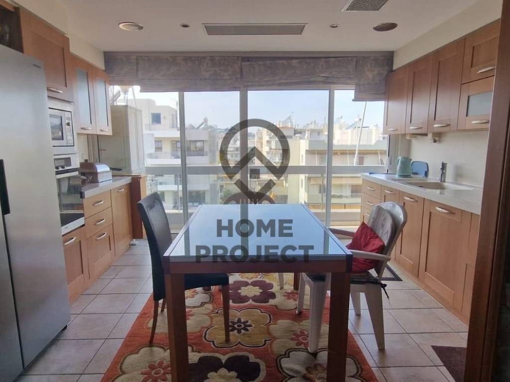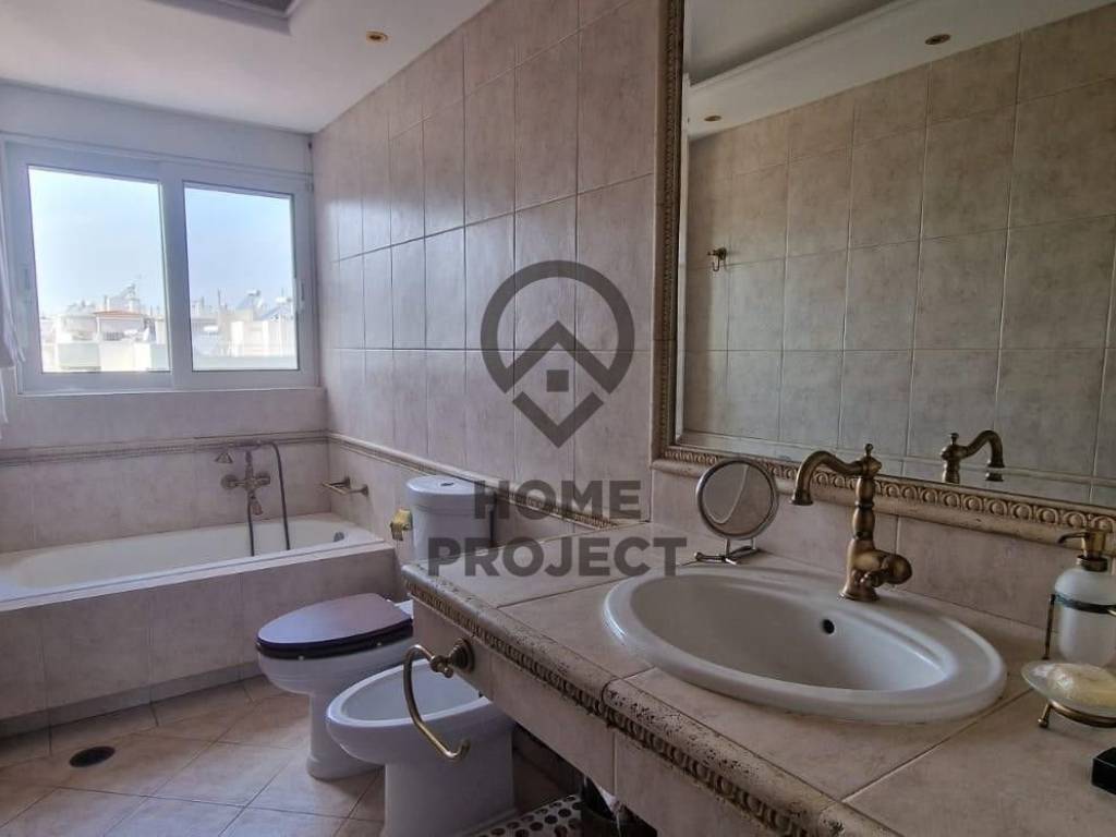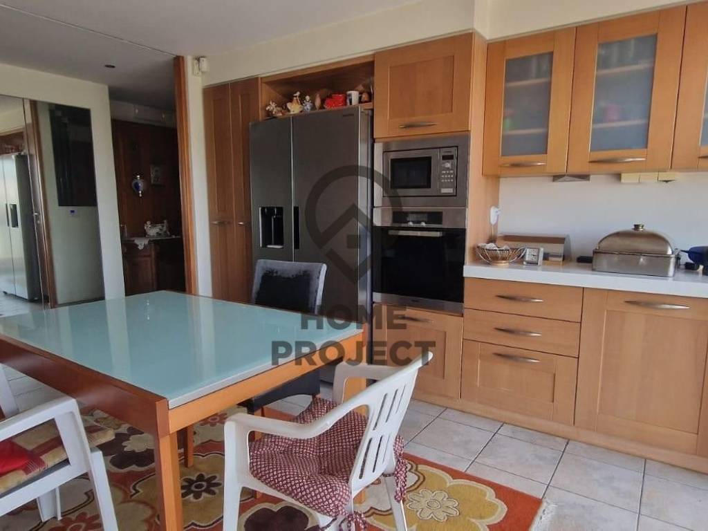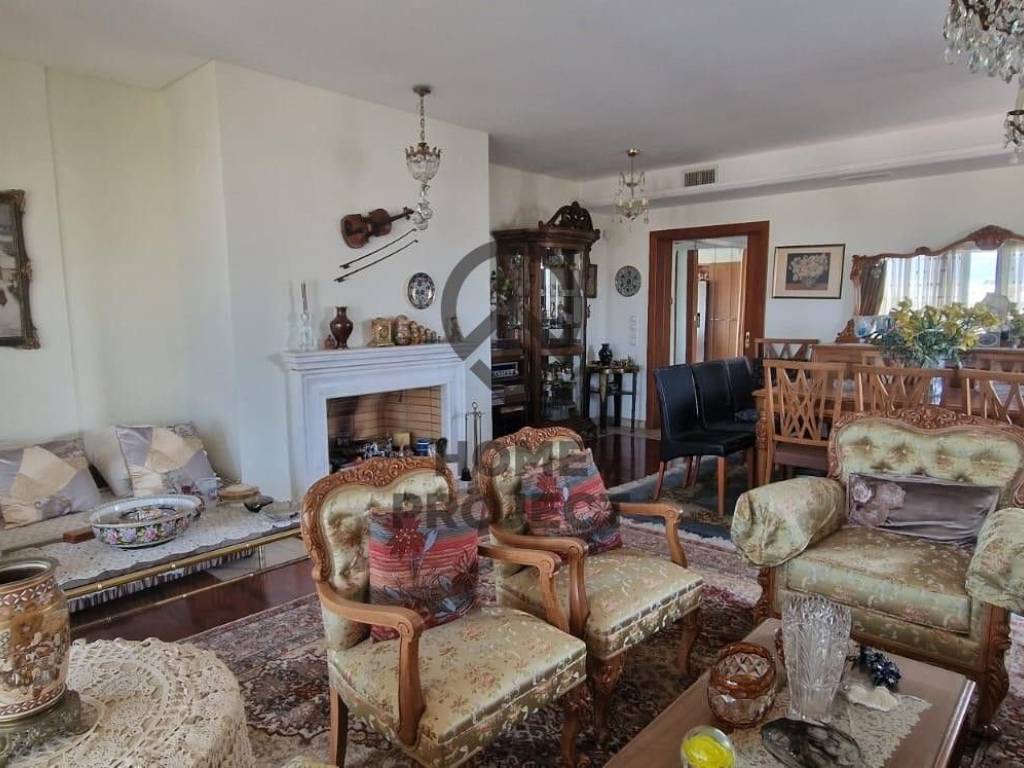 NEW PSYCHIKO Particularly bright 150 sq.m. apartment, 4th floor with unique unobstructed views around the perimeter, in a neat 2004 apartment building. The property consists of spacious reception area with nice fireplace and excellent oak floors that gives to nice terrace with open view, independent kitchen with Corian stalls, equipped with electrical appliances that also gives to terrace with view, 2 bedrooms of which 1 is master with walk-in closet and ensuite large bathroom, 3rd small utility room that can be used as a u/d and another large bath which also has use as WC foreigners. In addition, it has aluminum frames with double glazing, electric shutters and screens, security door, central cooling unit, basement parking space with the possibility of a second parking space and autonomous heating with a natural gas supply. It is located in an excellent location, near a National Defense metro station, schools, a market and a large sports center. No furniture. (Ref 4347)