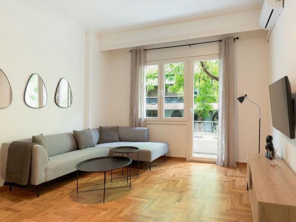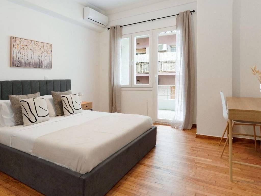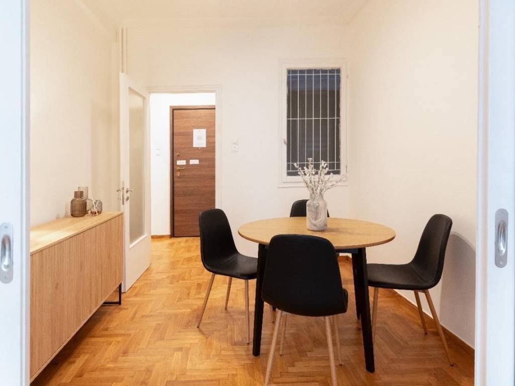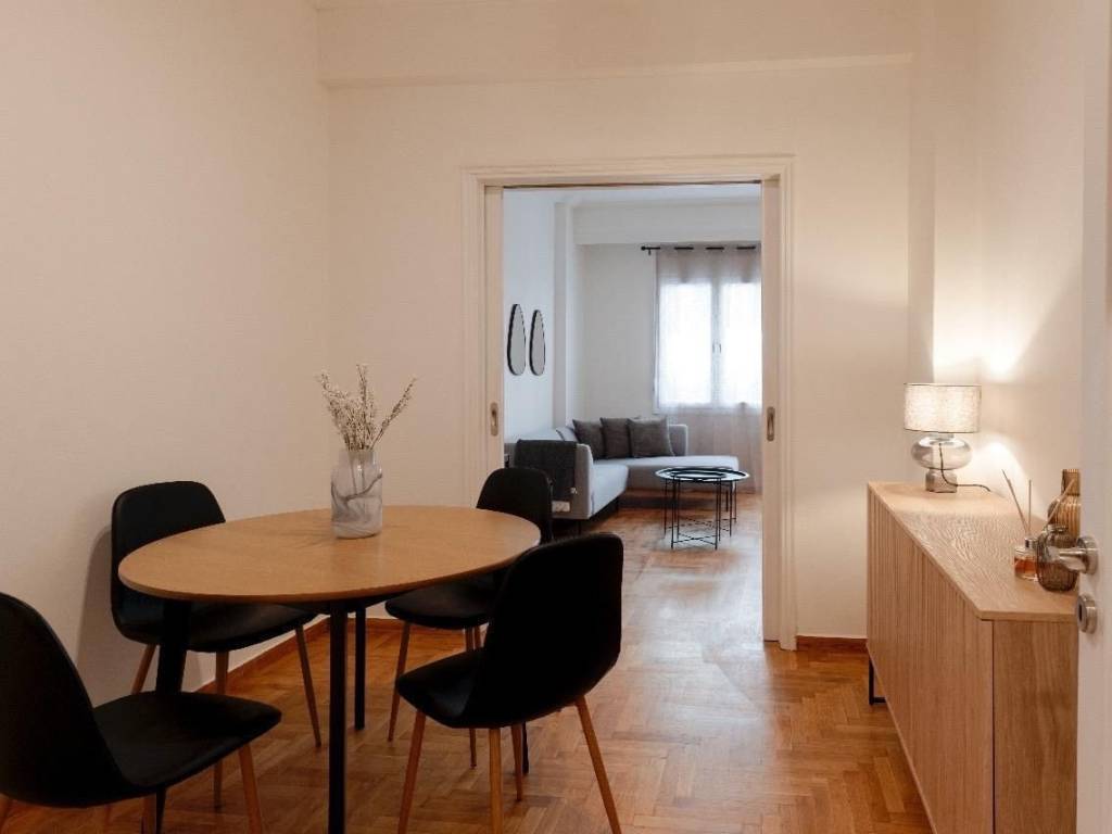 1st floor apartment for rent, renovated and fully furnished. The apartment has two bedrooms, bathroom, kitchen and two living-dining areas. It is located very close to the center of Athens and the main streets and 400 meters from the Victoria Square station